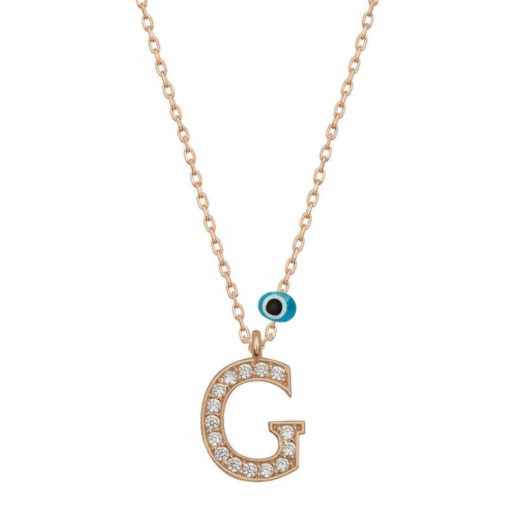 Gümüş Nazar Rose G Harfi Kadın Kolye