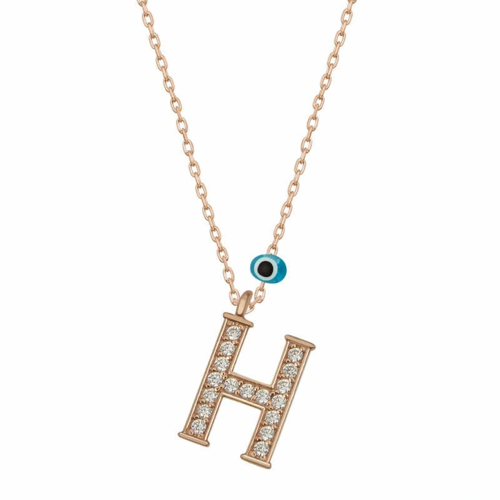 Gümüş Nazar Rose H Harfi Kadın Kolye