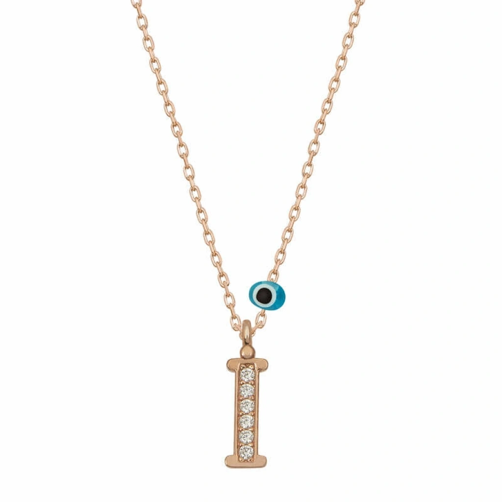 Gümüş Nazar Rose İ Harfi Kadın Kolye