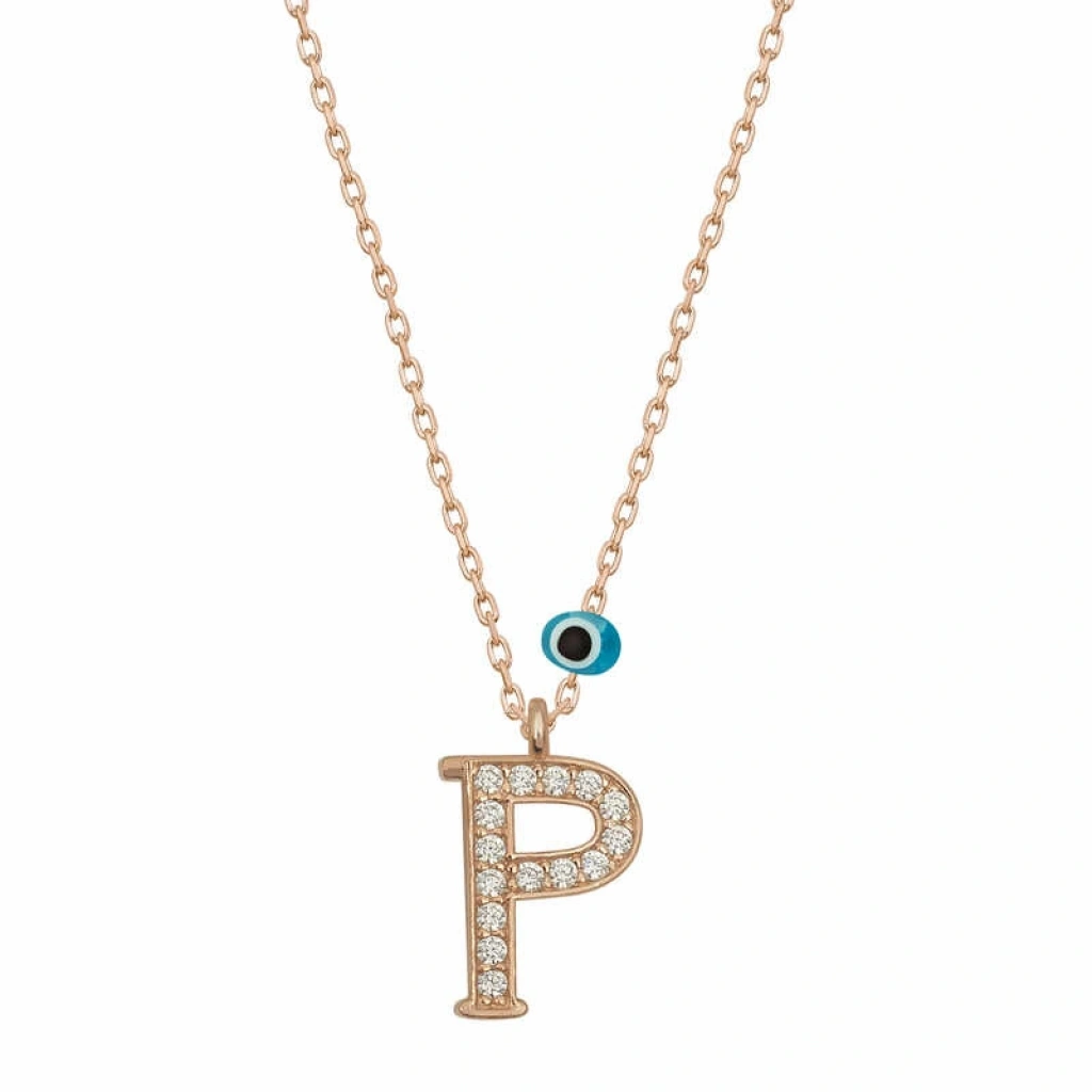Gümüş Nazar Rose P Harfi Kadın Kolye