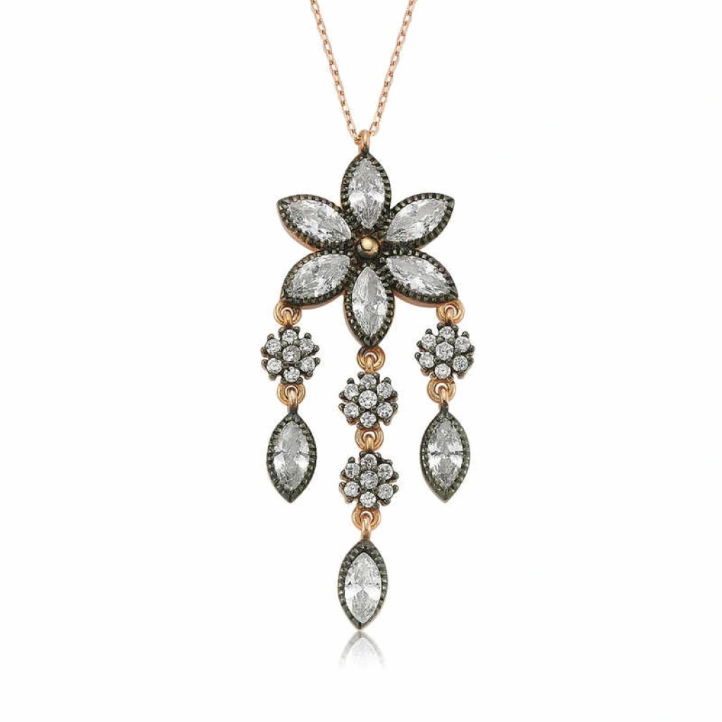 Papatya çiçeği temiz sevgi anlamını ifade eder. En büyük özelliklerinden biri her sapında bir tane olmasıdır. Bu güzellik tasarlanarak ortaya çıkan bu ışıl ışıl kolye zirkon taşlarla süslendi... Bu şık kolye; doğum günü hediyesi, sevgililer günü hediyesi veya annelere hediye olarak özel günlerde tercih edilebilecek mükemmel bir seçenektir. Papatya bayan kolye modeli 925 ayar gümüşten imal edilmiştir. Bu kolye üzerinde rose altın kaplama vardır. Rose altın kaplama yapılan ürünler parlaklığını uzun süre muhafaza eder, gümüş rengini pembe renge çevirir. Üzerinde bulunan ışıl ışıl taşlar zirkondur. Tüm gümüş kolye modellerimizde olduğu gibi gümüş papatya kolye de el emeği ile üretilmiştir. Gümüş ve değerli taşlar nedeniyle ürün ağırlığında ± %10 sapma olabilmektedir.