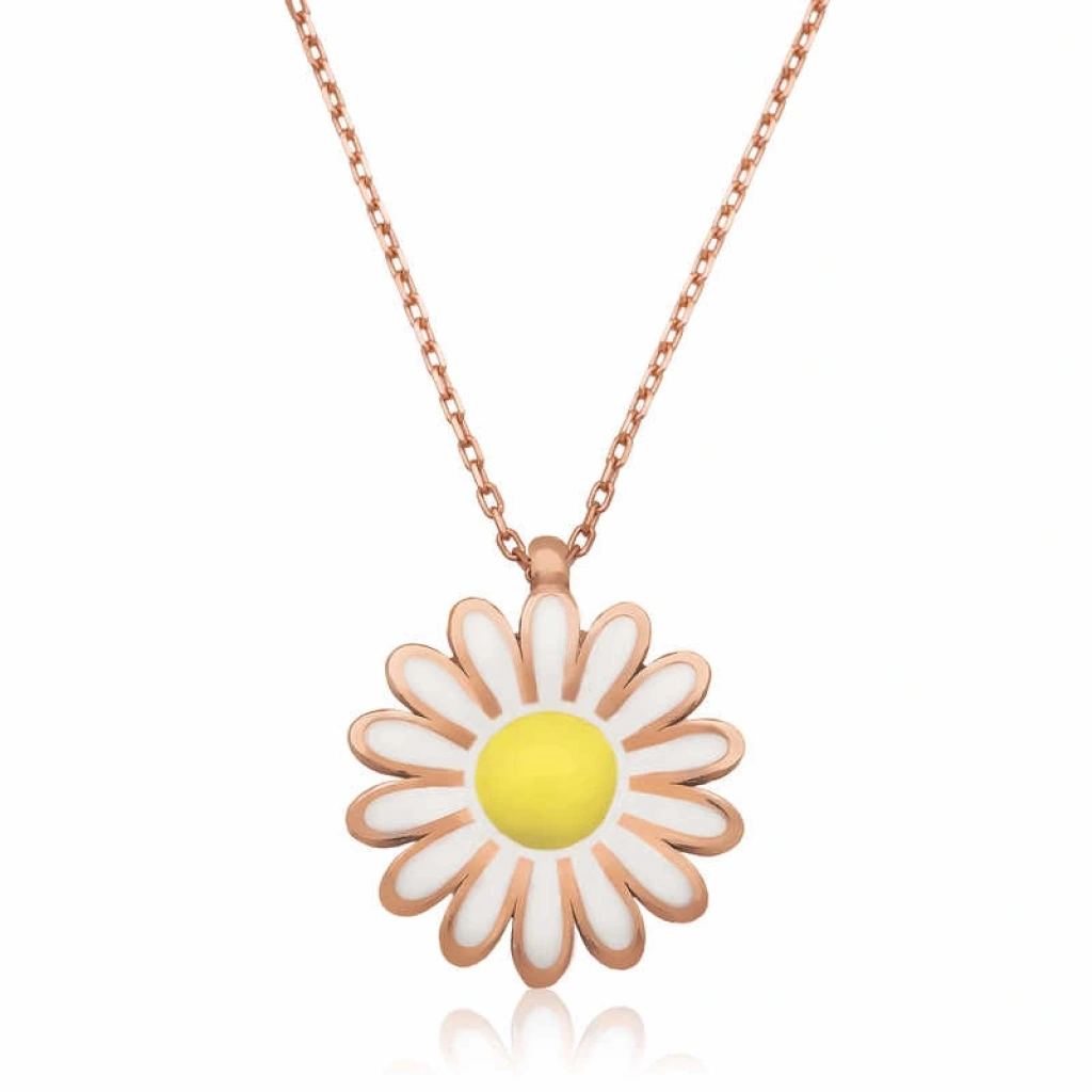 Papatya çiçeği temiz sevgi anlamını ifade eder. En büyük özelliklerinden biri her sapında bir tane olmasıdır. Bu güzellik tasarlanarak ortaya çıkan bu ışıl ışıl kolye zirkon taşlarla süslendi... Bu şık kolye; doğum günü hediyesi, sevgililer günü hediyesi veya annelere hediye olarak özel günlerde tercih edilebilecek mükemmel bir seçenektir. Gümüş papatya kolye 925 ayar gümüşten imal edilmiştir. Bu kolye üzerinde rose kaplama vardır. Rose kaplama yapılan ürünler parlaklığını uzun süre muhafaza eder, gümüş rengini pembe renge çevirir. Üzerinde bulunan ışıl ışıl taşlar zirkondur. Tüm gümüş kolye modellerinde olduğu gibi gümüş papatya kolye modeli de el emeği ile üretilmiştir. Gümüş ve değerli taşlar nedeniyle belirtilen ortalama ürün ağırlığında ± %10 sapma olabilmektedir.