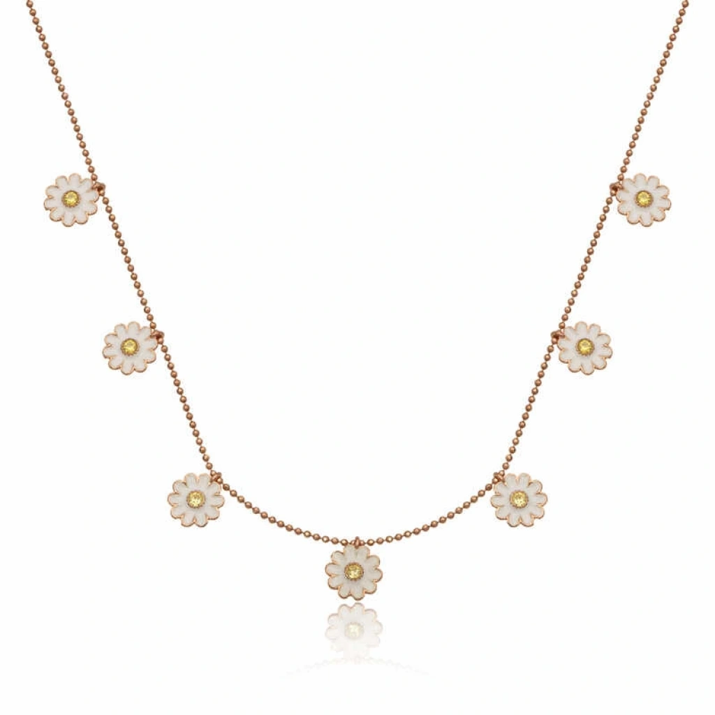 Papatya çiçeği temiz sevgi anlamını ifade eder. En büyük özelliklerinden biri her sapında bir tane olmasıdır. Bu güzellik tasarlanarak ortaya çıkan bu ışıl ışıl kolye, doğum günü hediyesi, sevgililer günü hediyesi veya annelere hediye olarak özel günlerde tercih edilebilecek mükemmel bir seçenektir. Gümüş papatya şans Kadın kolye 925 ayar gümüşten imal edilmiştir. Bu kolye üzerinde rose kaplama vardır. Rose kaplama yapılan ürünler parlaklığını uzun süre muhafaza eder. Tüm gümüş kadın kolye modellerinde olduğu gibi gümüş papatya şans kadın kolye modeli de el emeği ile üretilmiştir. Gümüş ve değerli taşlar nedeniyle belirtilen ortalama ürün ağırlığında ± %10 sapma olabilmektedir.