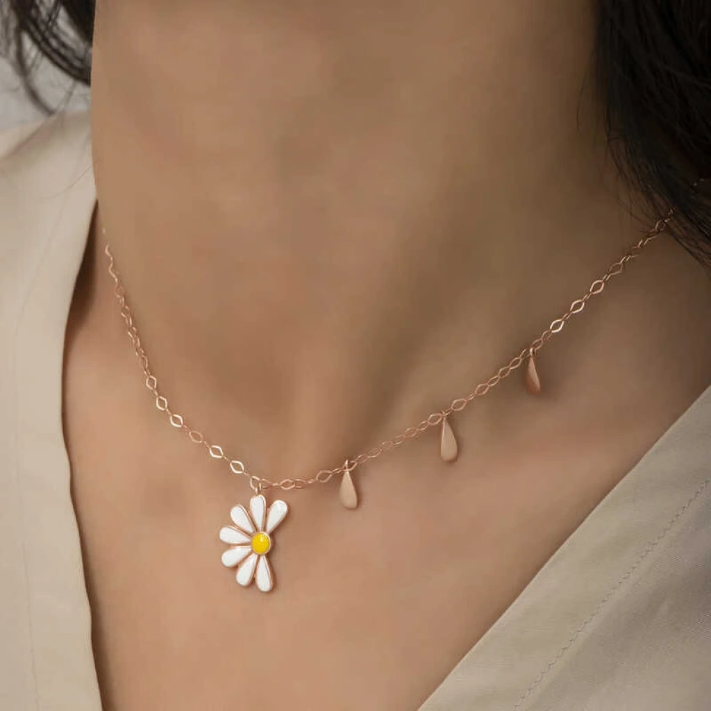 Gümüş Papatya Seviyor Sevmiyor Bayan Kolye