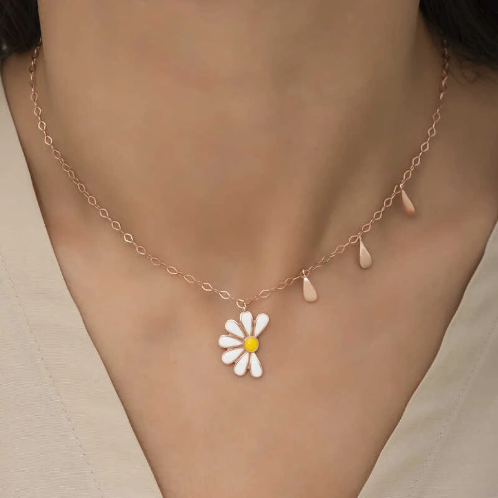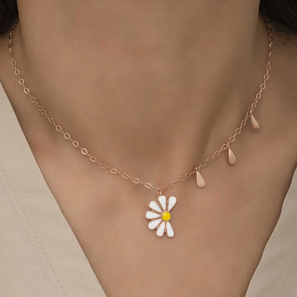 925 Ayar Gümüş Papatya Seviyor Sevmiyor Bayan Gümüş Kolye T5981 (599599)