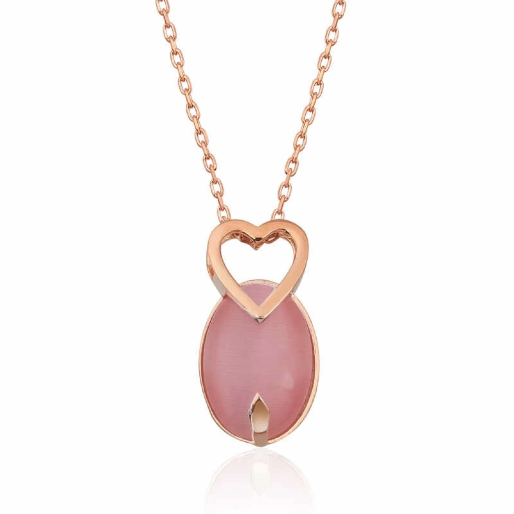 Gümüş pembe kedi gözü taşla süslenmiş kalpli bayan kolye, severek kullanabileceğiniz ve sevdiklerinize hediye edebileceğiniz harika bir modeldir. Gümüş kolye 925 ayar gümüşten imal edilmiştir. Gümüş üzerine rose kaplama yapılmıştır. Rose kaplama yapılan gümüş bayan kolye modelleri parlaklığını uzun süre muhafaza eder, oksitlenmesi gecikir. Gümüş olan zincir boyu ortalama 45 cm'dir. Üzerinde bulunan taş kedi gözüdür. Tüm gümüş kolye modellerimizde olduğu gibi gümüş pembe kedi gözü taşlı Kalp detaylı kolye modeli de el emeği ile üretilmiştir. Gümüş ve değerli taşlar nedeniyle ürün ağırlığında ± %10 sapma olabilmektedir.