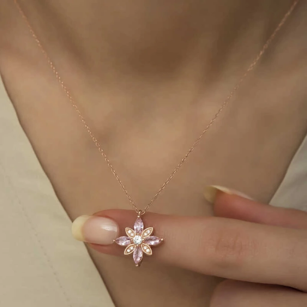 Gümüş Pembe Taşlı Umut Çiçeği Kolye