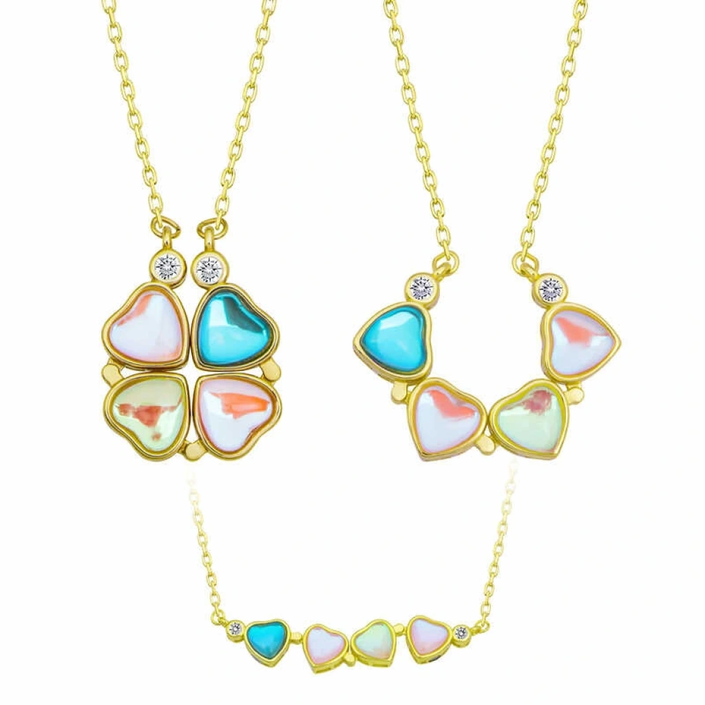 Dört yapraklı yonca bütün kültürlerde iyi şansın sembolü olarak kabul edilir. Birinci yaprak ümidi, ikincisi imanı, üçüncüsü aşkı, dördüncü yaprak ise şansı simgeler. Tabiatta çok nadir bulunan bu dördüncü yapraktır. Gümüş renkli zirkon taşlarla süslenmiş renkli kalpli açılabilen yonca kadın kolye, severek kullanabileceğiniz ve sevdiklerinize hediye edebileceğiniz harika bir modeldir. Gümüş renkli taşlı kadın kolye 925 ayar gümüşten imal edilmiştir. Gümüş kolye üzerinde gold kaplama yapılmıştır. Gold kaplama yapılan gümüş kadın kolyeler parlaklığını uzun süre muhafaza eder, oksitlenmesi gecikir. Gümüş olan zincir boyu ortalama 45 cm'dir. Tüm gümüş kadın kolye modellerimizde olduğu gibi gümüş renkli açılabilen yonca kadın kolye de el emeği ile üretilmiştir. 3 farklı şekilde kullanabilirsiniz. Gümüş ve değerli taşlar nedeniyle ürün ağırlığında ± %10 sapma olabilmektedir.