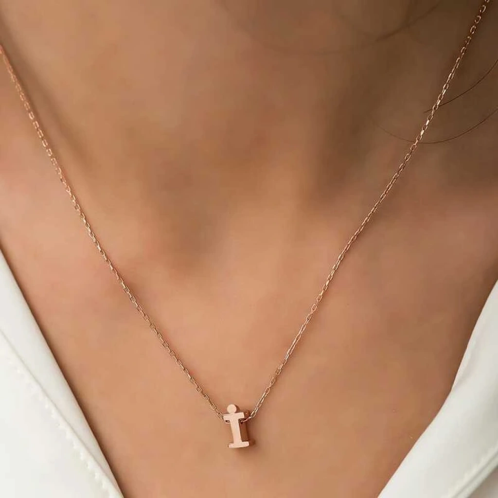 Gümüş Rose 3 Boyutlu İ Harf Kolye
