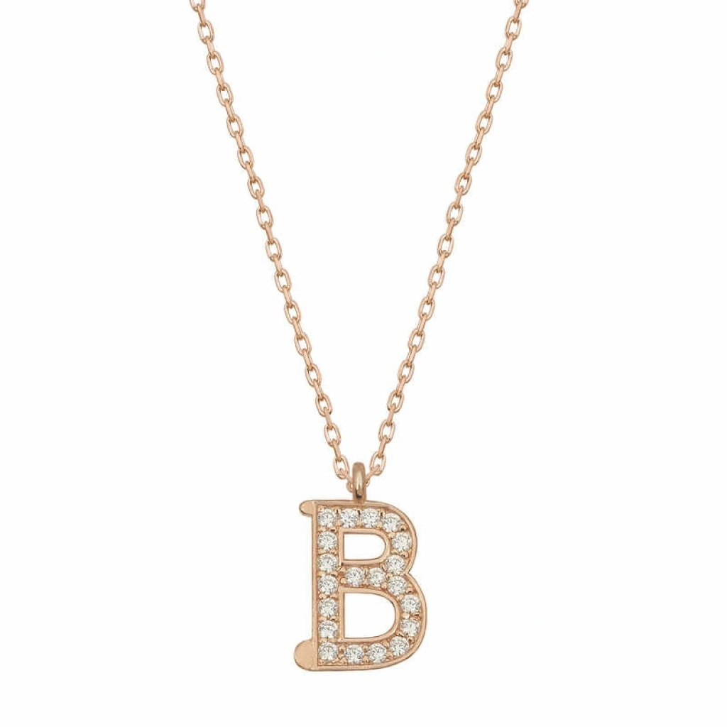 Gümüş Rose B Harfi Kadın Kolye