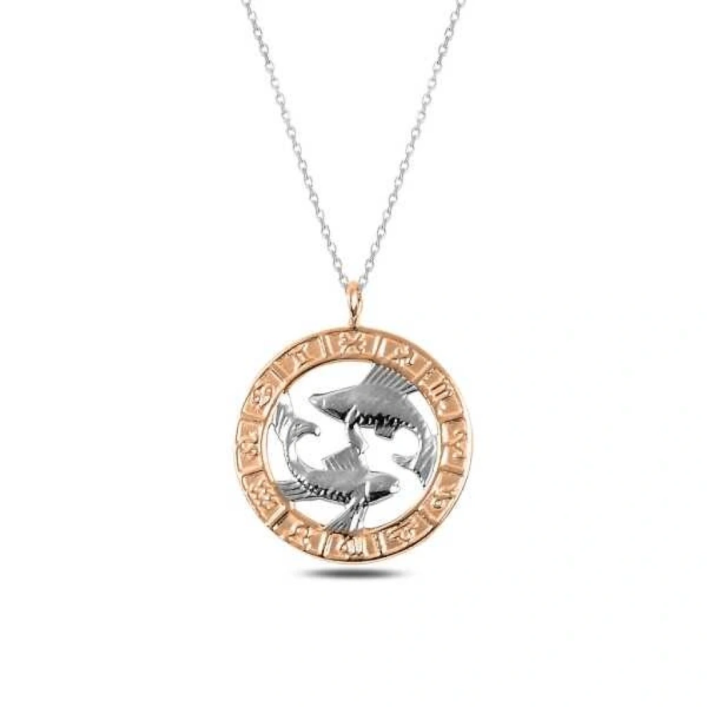 Astroloji ile yakından ilgilenenleri bu sezonda da en çok tercih edilen burç koleksiyonu ile tanıştırıyoruz. Modern stilin adeta aynası haline gelen birbirinden şık kolyeler, bu sezon da Zodyak üzerinde bulunan 12 takım yıldızının yansıması ile oluştu. Her burca özgü şans getiren özel tasarımlarla bir araya getirilmiş 12 farklı kolye çeşidi; astrolojinin gücüne inanların en iddialı aksesuar parçalarına dönüşecek. Hem şık hem de özel bir parça olan burç koleksiyonunda yer alan kolye modelleri ile ister kendinizi, ister sevdiklerinizi şımartabilirsiniz. Sevdiklerinize güven ve şans dileklerinizi sunmanıza yardımcı olan ve en güzel hediyenizi simgeleyen kolye modelleri ile tanışmak için siz de burç koleksiyonu ile tanışmak için acele edin. Balık, Zodyağın son astrolojik burcudur. Batı astrolojisine göre 20 Şubat ile 20 Mart arasında doğanlar bu burca mensup olur. Balık burcu kolye, 925 ayar gümüşten imal edilmiştir. Gümüş üzerine rose altın kaplama yapılmıştır. Rose kaplama yapılan gümüş kolyeler parlaklığını uzun süre muhafaza eder, gümüşü bakır rengine dönüştürür. Tüm gümüş ürünlerde olduğu gibi gümüş balık burcu kolye de el emeği ile üretilmiştir. Gümüş ve değerli taşlar nedeniyle belirtilen ortalama ürün ağırlığında ± %10 sapma olabilmektedir.