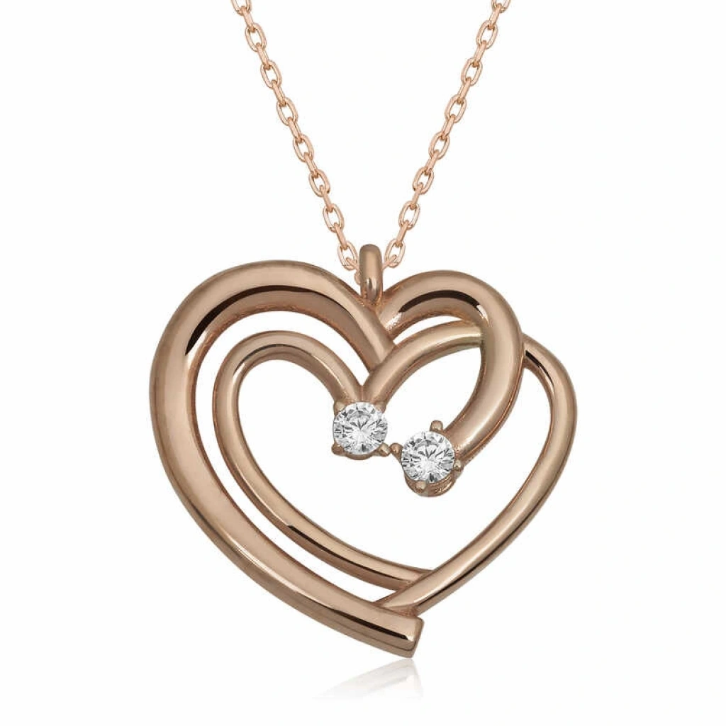 Gümüş Birleşmiş Kalpler Kadın Kolye