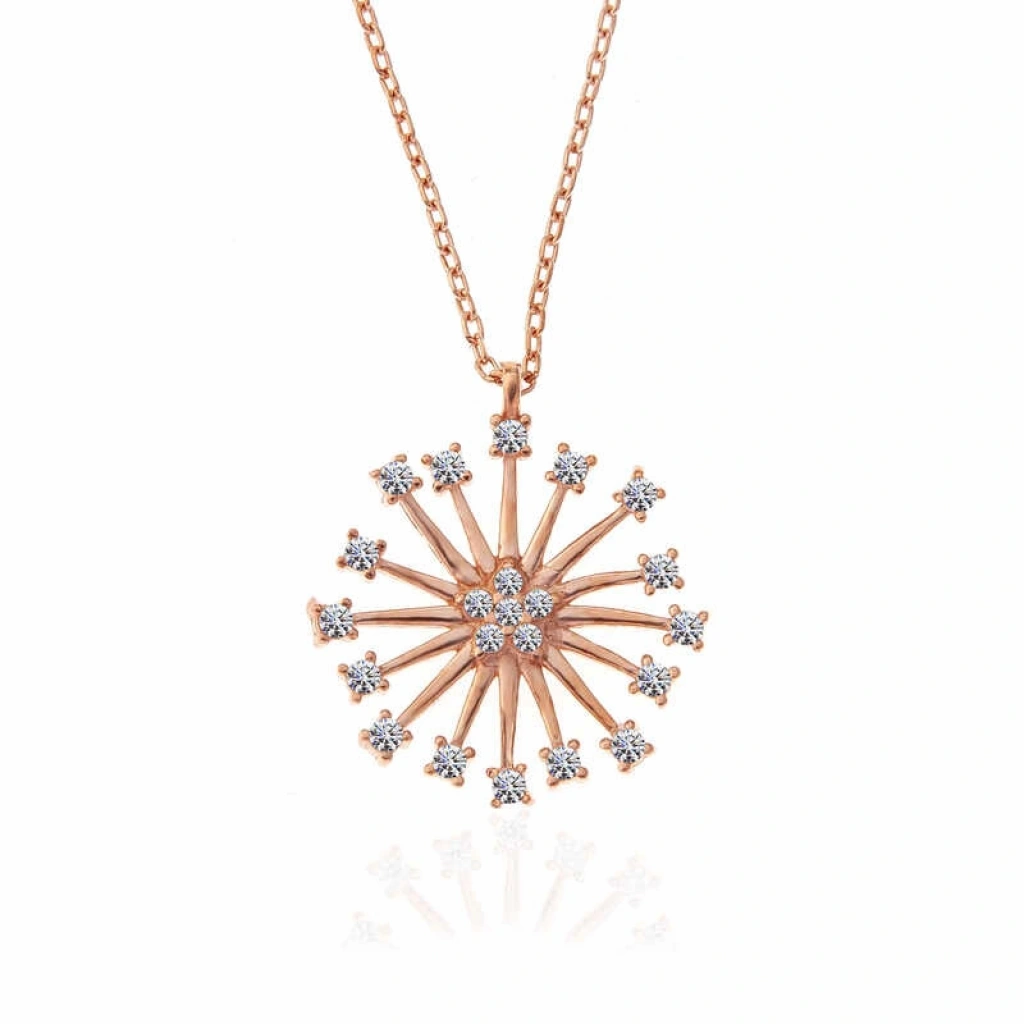 Sevdiklerinize duygularınızı ifade etmenin en özel ve zarif yolu O’na gönderebileceğiniz şık, rengarenk ve mis kokulu çiçeklerdir. Özel günlerde verilecek hediyeler arasında olan çiçek, bu kez farklı bir yorumla tasarlandı... Çiçek kolye sevgisini bir kez daha anlatmak isteyenleri, sen bir çiçeksin demek isteyenleri bekliyor. Bu özel tasarım, çiçek kadın kolye 925 ayar gümüşten imal edilmiştir. Gümüş üzerine rose kaplama yapılmıştır. Rose kaplama yapılan gümüş kadın kolye modelleri parlaklığını uzun süre muhafaza eder ve oksitlenmesi gecikir. Kolye üzerinde bulunan taşlar zirkondur. Tüm kadın gümüş kolye modellerinde olduğu gibi gümüş çiçek kadın kolye de el emeği ile üretilmiştir. Gümüş ve değerli taşlar nedeniyle belirtilen ürün ağırlığında ± %10 sapma olabilmektedir.