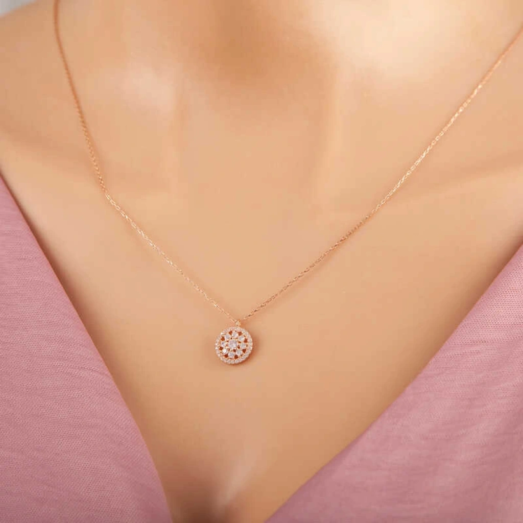 Sevdiklerinize duygularınızı ifade etmenin en özel ve zarif yolu O’na gönderebileceğiniz şık, rengarenk ve mis kokulu çiçeklerdir. Özel günlerde verilecek hediyeler arasında olan çiçek, bu kez farklı bir yorumla tasarlandı... Çiçek kolye sevgisini bir kez daha anlatmak isteyenleri, sen bir çiçeksin demek isteyenleri bekliyor. Bu özel tasarım, çiçek kadın kolye 925 ayar gümüşten imal edilmiştir. Gümüş üzerine rose kaplama yapılmıştır. Rose kaplama yapılan gümüş kadın kolye modelleri parlaklığını uzun süre muhafaza eder ve oksitlenmesi gecikir. Kolye üzerinde bulunan taşlar zirkondur. Tüm kadın gümüş kolye modellerinde olduğu gibi gümüş çiçek kadın kolye de el emeği ile üretilmiştir. Gümüş ve değerli taşlar nedeniyle belirtilen ürün ağırlığında ± %10 sapma olabilmektedir.