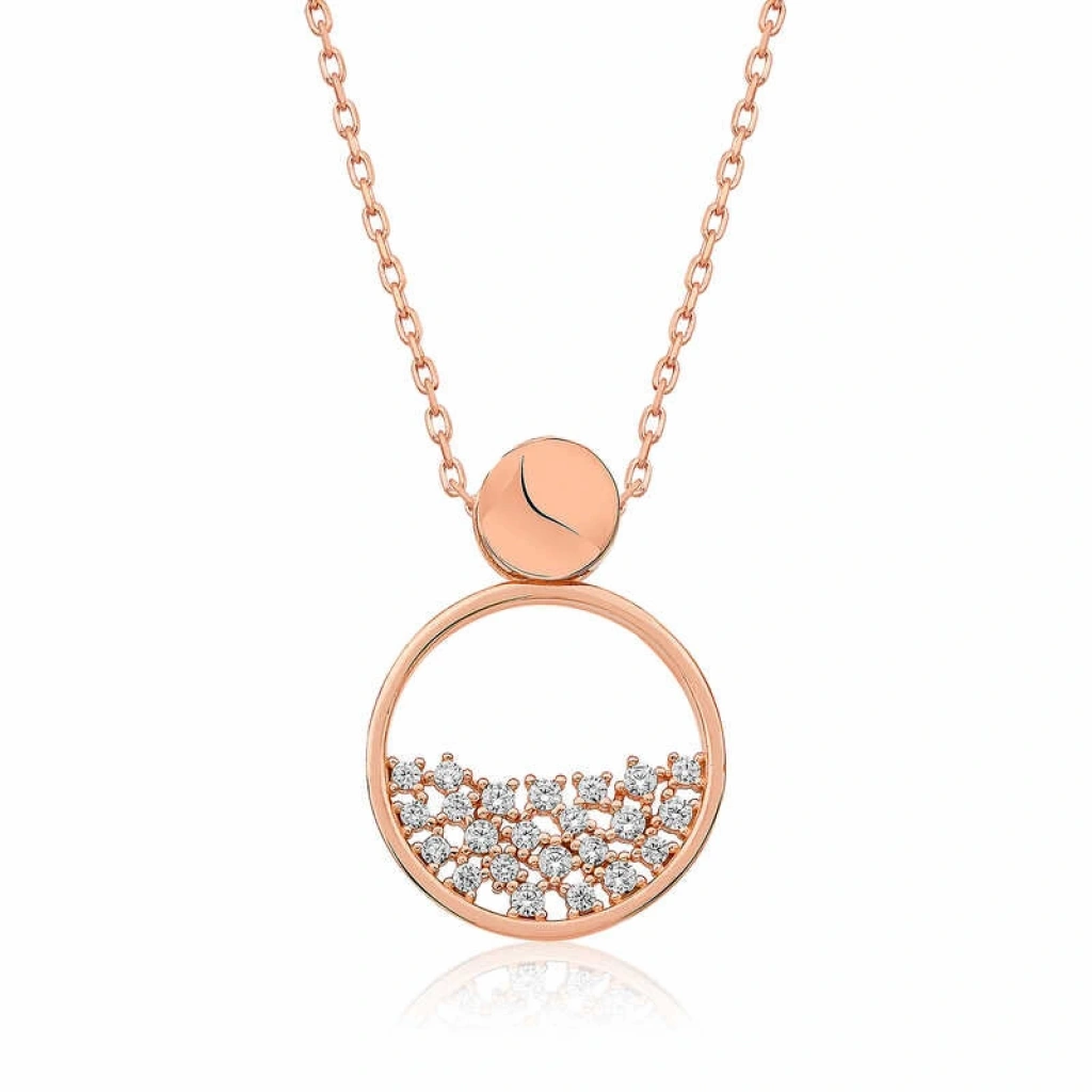 Beyaz zirkon taşlarla süslenmiş rose çiğ damlası kolye, şık ve ışıltıyı sevenler için tasarlandı. Günün her anında severek kullanabileceğiniz, herkesin beğenisini toplayabilecek ve göz kamaştırabilecek bir üründür. Gümüş çiğ damlası kolye 925 ayar gümüşten imal edilmiştir. Bu kolye üzerine rose kaplama yapılmıştır. Rose kaplama yapılan ürünler parlaklığını uzun süre muhafaza eder.Üzerinde bulunan taşlar zirkon'dur. Tüm gümüş kolye modellerinde olduğu gibi gümüş rose çiğ damlası kolye modeli de el emeği ile üretilmiştir. Gümüş ve değerli taşlar nedeniyle belirtilen ortalama ürün ağırlığında ± %10 sapma olabilmektedir. Ürünlerimizin tamamı el emeği ile üretilmiştir.