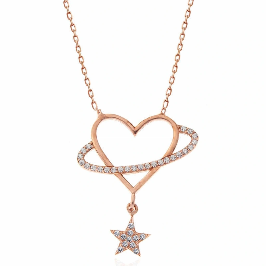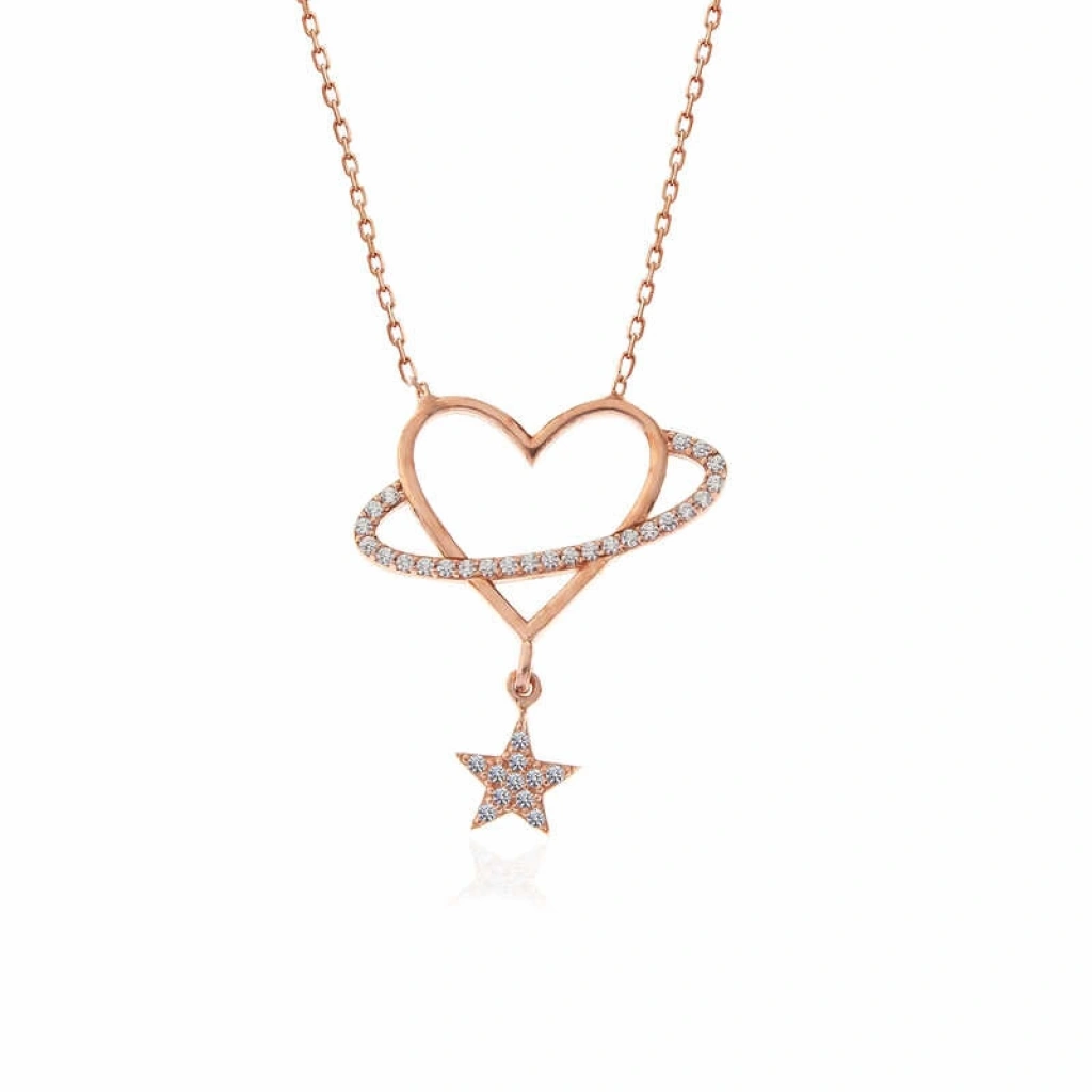Gümüş Rose Kalp Yıldız Kadın Kolye