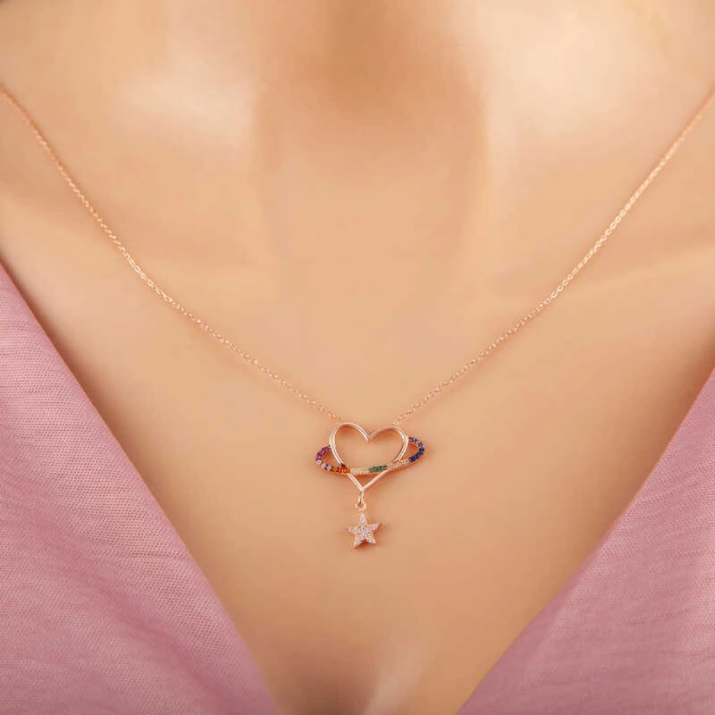 Gümüş Rose Kalp Yıldız Kadın Kolye