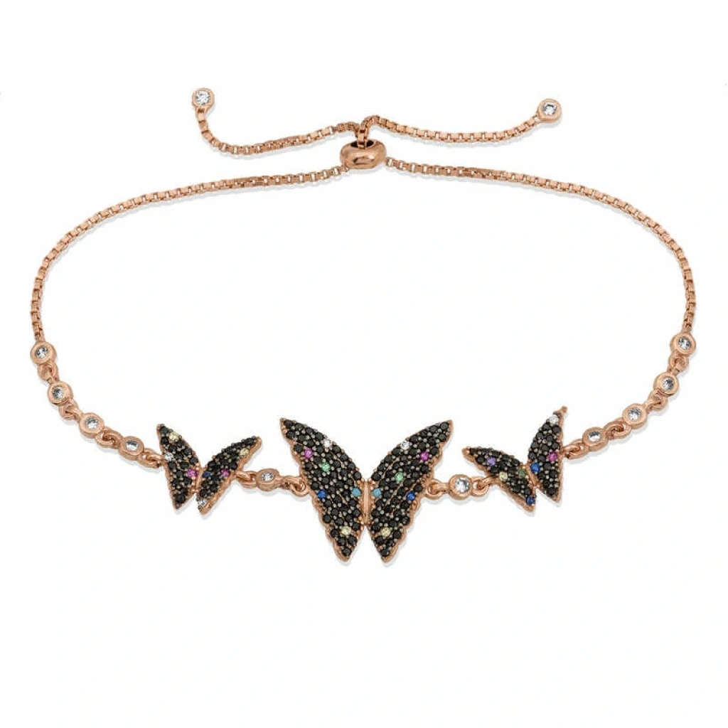 Kelebeğin en güçlü anlamlarından biri değişimi simgelemesidir. Eski Yunan’da ruhun beden üzerindeki etkisini ve bu etkinin yarattığı büyük değişimleri simgeler. Kadim bilgelikte Kelebek; direkt ruhun sembolüdür, ruhun özgürlüğünü, hafifliğini ve zarafetini simgeler. Kadınlarca tercih edilen en popüler motiflerden biridir. Sevenlerine doğanın gizemini ve insanın hayal gücünün zenginliğini hatırlatır. Sizde sevdiklerinize rengarenk kelebeklerden oluşan bilekliği hediye edebilir onları sevindirebilirsiniz. Ürünlerimizin tamamı el emeği ile üretilmiştir. Gümüş ve değerli taşlar nedeniyle belirtilen ortalama ürün ağırlığında ± %10 sapma olabilmektedir.