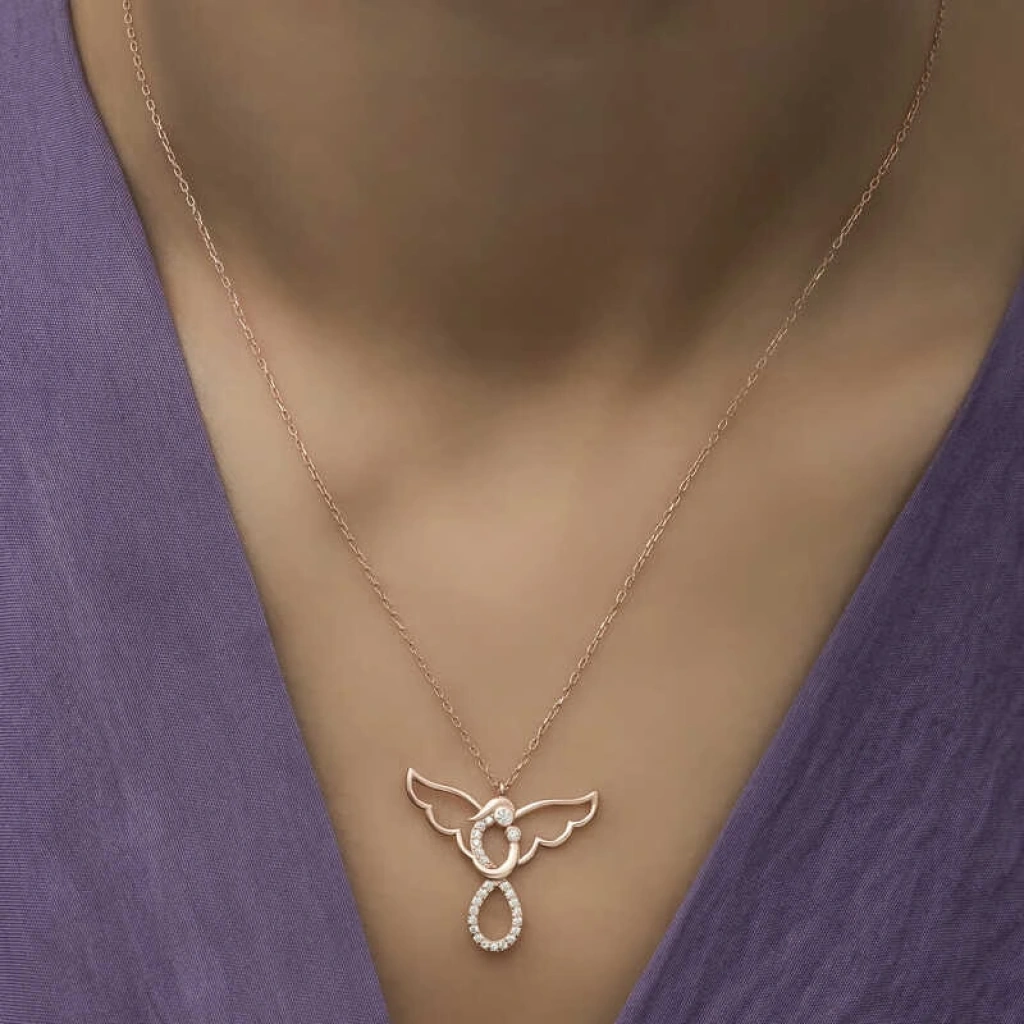 Gümüş Rose Melek Anne Ve Çocuk Bayan Kolye