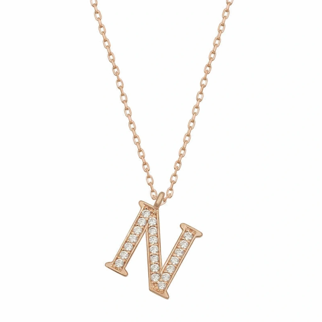 Gümüş Rose N Harfi Kadın Kolye