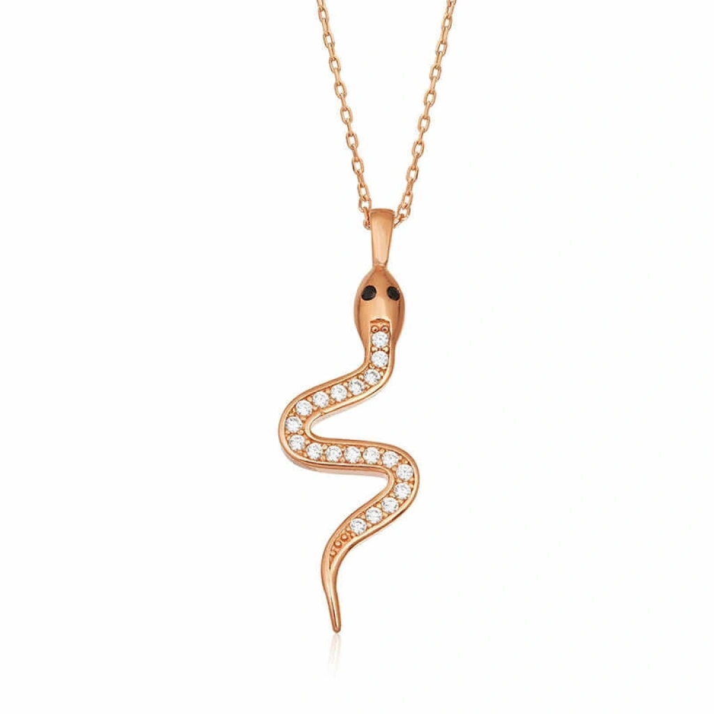 Yılan simgesinin bir çok yüzlülüğü vardır ama tüm simgeleri aynı düşünce etrafında gelişir. Ölümsüzdür çünkü yenilenir, yenilendiği için ayın gücüyle bağdaştırılır ve bununla bereket, bilgi ve ölümsüzlük dağıtır. Bir çok kültürde özellikle Hristiyanlıkta kutsal olarak kabul gören yılar hayatı ve hayatın gücünü temsil etmektedir. Sizde bu kolye ile gücü ve bilgeliği boynunuzda taşımaya ne dersiniz. Yılan bayan kolye 925 ayar gümüşten imal edilmiştir. Gümüş üzerine rose kaplama yapılmıştır. Rose kaplama yapılan gümüş kolye modelleri parlaklığını uzun süre muhafaza eder ve kararması gecikir. Gümüş zincirin uzunluğu 45 cm'dir. Tüm bayan kolye modellerinde olduğu gibi gümüş yılan bayan kolye de el emeği ile üretilmiştir. Gümüş ve değerli taşlar nedeniyle belirtilen ürün ürün ağırlığında ± %10 sapma olabilmektedir.