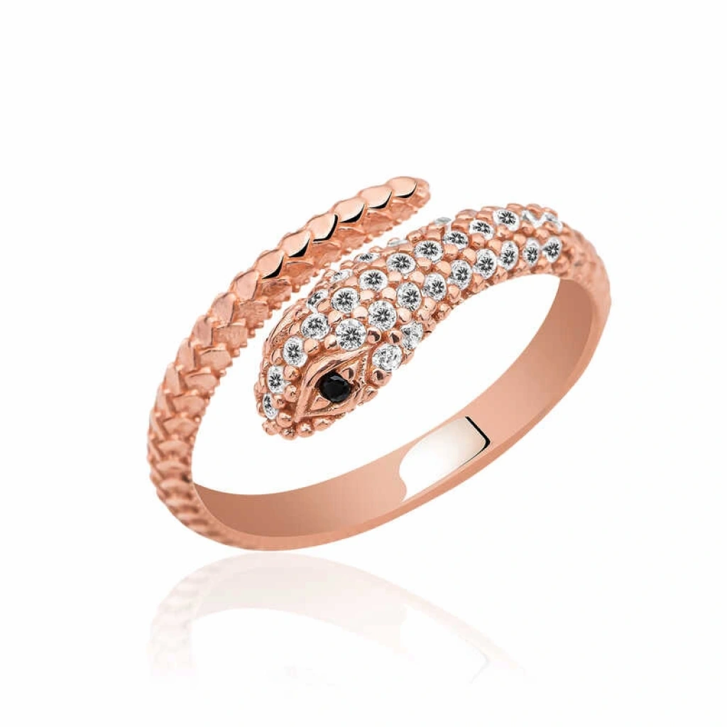 Mitolojide yılan figürü oldukça popüler bir kavram olarak karşımıza çıkmaktadır. Birçok kültür yılana farklı anlamlar vermektedir. Yaşam süreci ve yaşamını sürdürdüğü elverişsiz koşullar, yer altından yeryüzüne açılan deliklerden yüzeye çıkması, vücut dış yüzeyinden kansız bir şekilde sıyrılarak kendini yenilemesi nedeniyle insanlar tarafından sıklıkla ölüm ve yeniden doğuşun sırrına sahip bir hayvan olarak algılanmasına neden olmuştur. Zaman zaman da aynı nedenden ötürü tıp ile ilişkilendirilmiştir. Ayrıca yılanın besini bütün olarak yutması ve karnında uzun süre saklaması "ana karnına dönüş" ile özdeşleştirilmiş ve bu nedenle yılan pek çok mitolojide ölümü takiben yeniden doğuşu sembolize eder olmuş ve "yaratıcı" görevi üstlenmiştir. Siz de farklı kültürlerde farklı anlamlar taşıyan gümüş rose yılan yüzüğü sevdiklerinize armağan edebilir ya da kendinizi ödüllendirebilirsiniz. Bu şık yüzük; doğum günü hediyesi, sevgililer günü veya özel günlerde tercih edilebilecek mükemmel bir seçenektir. Yüzük; 925 ayar gümüşten imal edilmiştir. Parmak kalınlığına göre ayarlanabilir bir yüzüktür. Gümüş üzerine rose kaplama yapılmıştır. Diğer yüzüklerde olduğu gibi gümüş rose yılan yüzük de el emeği ile üretilmiştir. Gümüş ve değerli taşlar nedeniyle belirtilen ortalama ürün ağırlığında ± %10 sapma olabilmektedir.
