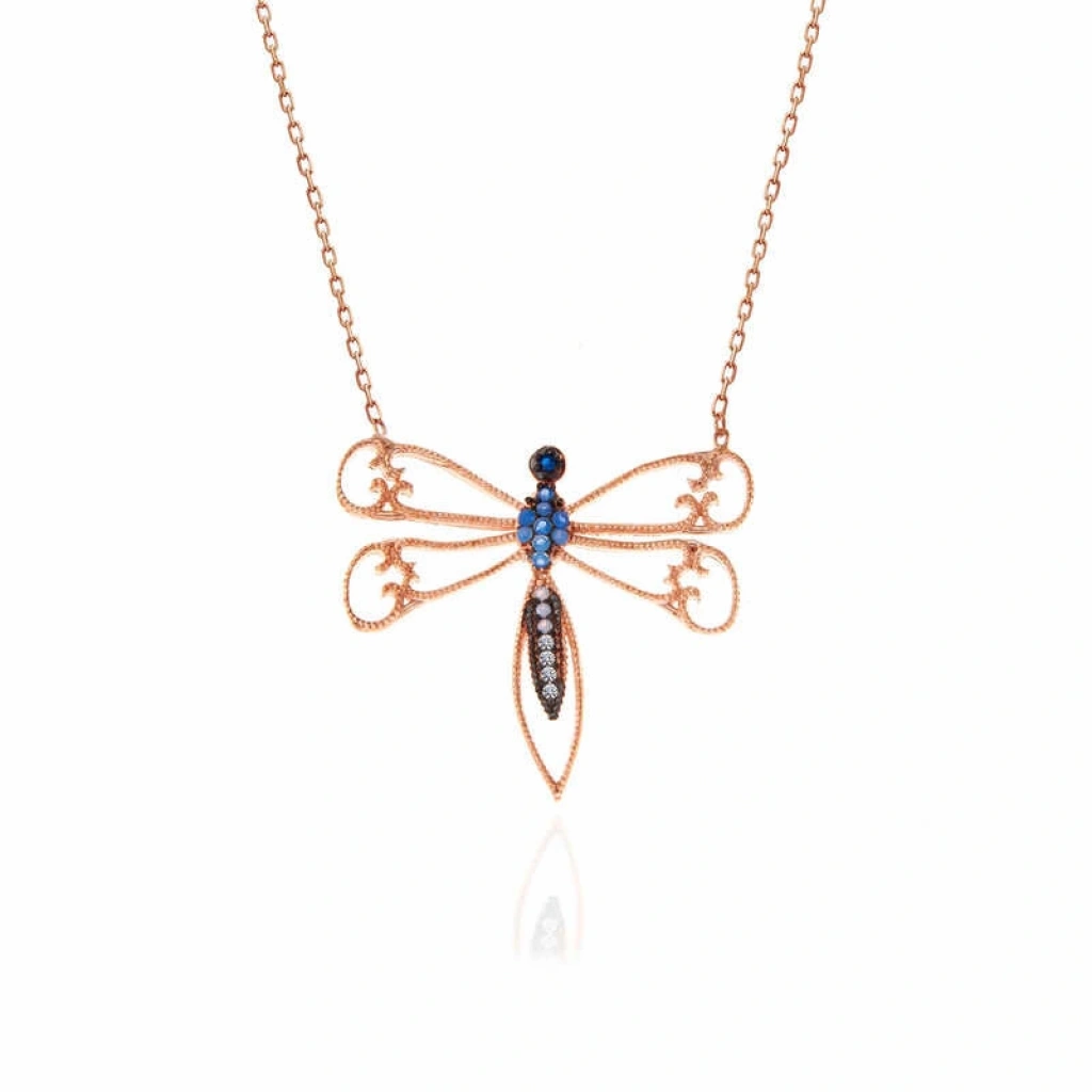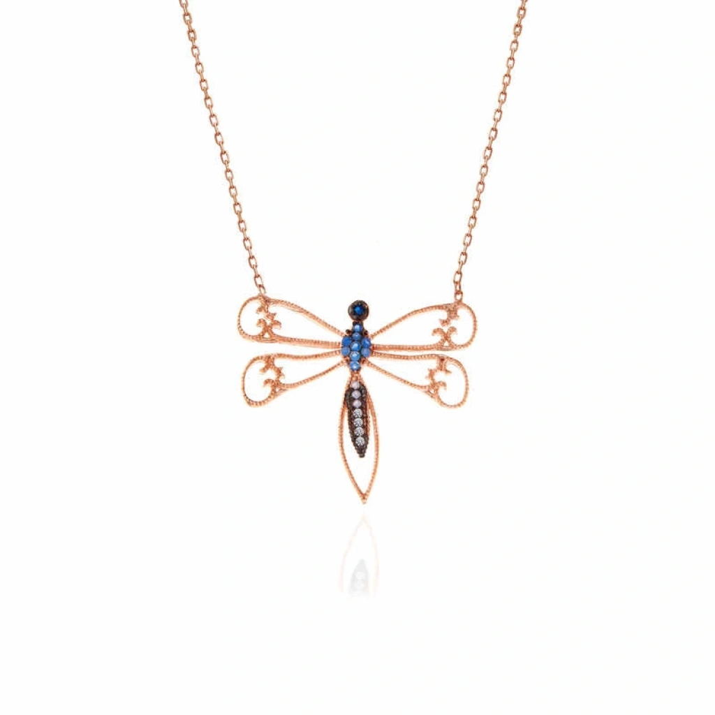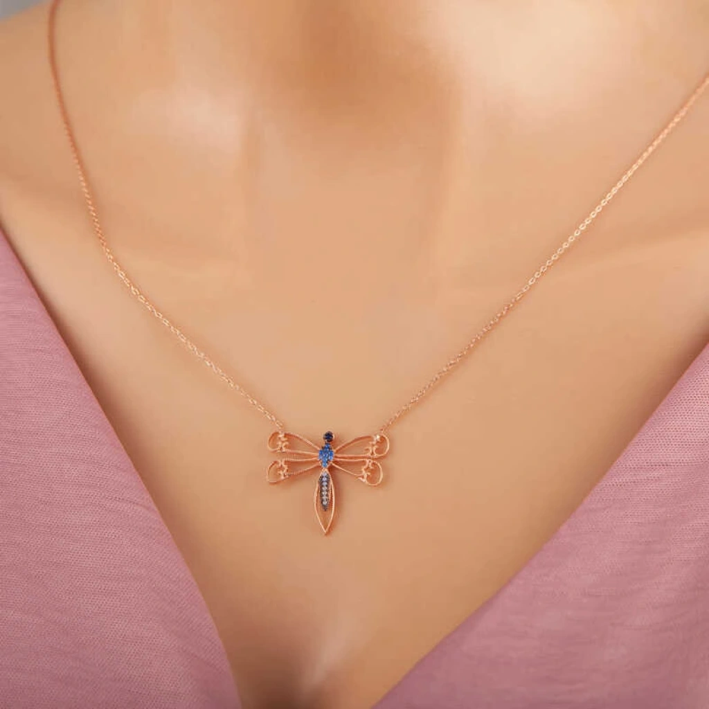 Yusufçuk, bağlılığın, sadakatin, tek eşliliğin sembolüdür... Ölüme rağmen aşkından vazgeçmez yusufçuk... Doğa gereği, erkek yusufçuk ile dişi yusufçuğun çiftleşmesinin ardından erkek yusufçuk ölmektedir. Sonunda ölüm olduğunu bile bile erkek yusufçuk, hayatı boyunca tek bir dişi ile çiftleşiyor ve bundan asla vazgeçmiyor... Kolye, böyle hüzün ve sadakat kokan bu güzellikten ilham alarak tasarlanmıştır... Bu zarif kolye; doğum günü hediyesi, sevgililer günü hediyesi veya özel günlerde tercih edilebilecek müthiş bir kolyedir. Bu şık tasarım 925 ayar gümüşten imal edilmiştir. Gümüş üzerine rose kaplama yapılmıştır. Rose kaplama yapılan kolyeler parlaklığını uzun süre muhafaza eder, gümüş rengini pembe renge dönüştürür. Kolye üzerinde bulunan taşlar zirkondur. Tüm kadın gümüş kolyelerde olduğu gibi gümüş yusufçuk kadın kolye de el emeği ile üretilmiştir. Gümüş ve değerli taşlar nedeniyle belirtilen ürün ağırlığında ± %10 sapma olabilmektedir.