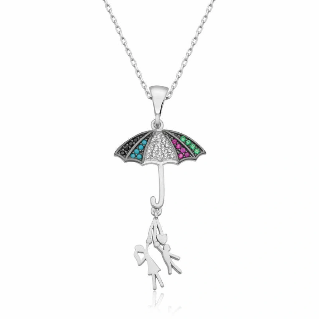 Gümüş Şemsiye Tutan Aşıklar Kadın Kolye