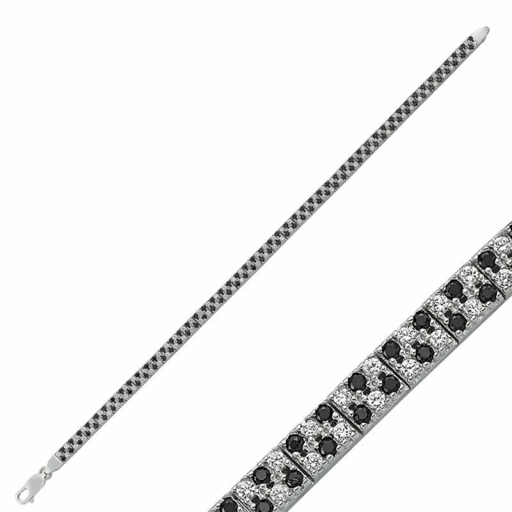 Gümüş Siyah Beyaz Taşlı Su Yolu Bayan Bileklik