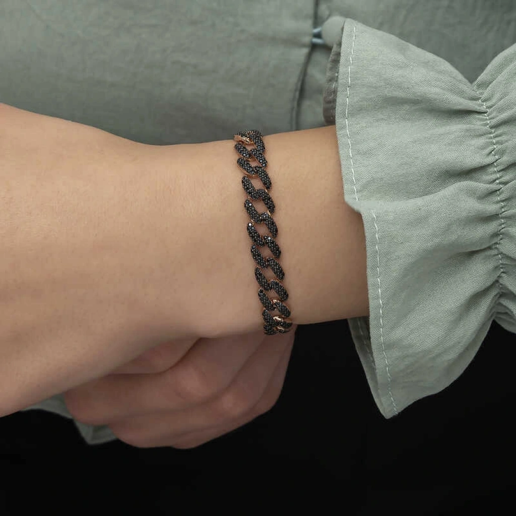 Gümüş Siyah Taşlı Gurmet Bayan Bileklik