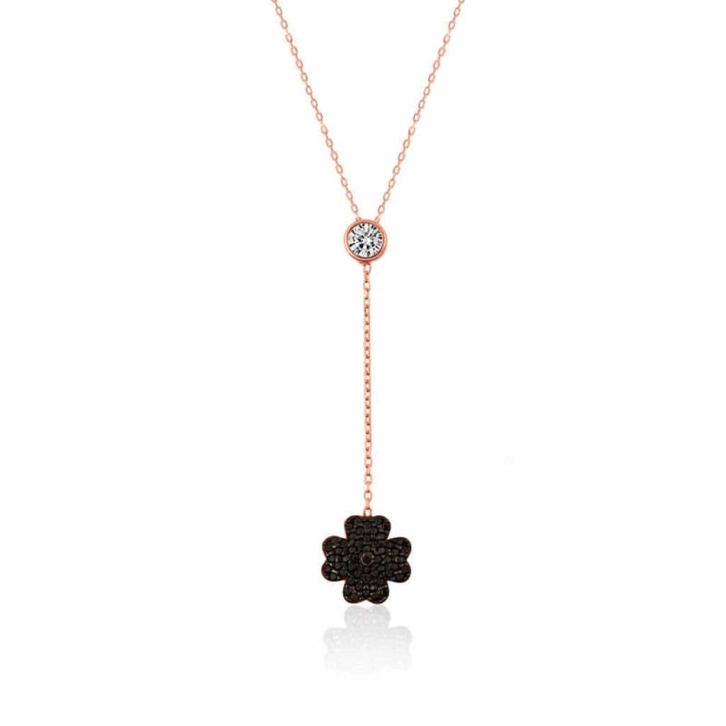 Dört yapraklı yonca bütün kültürlerde iyi şansın sembolü olarak kabul edilir. Yoncanın dört yaprağının da ayrı birer anlamı vardır. Birinci yaprak ümidi, ikincisi imanı, üçüncüsü aşkı, dördüncü yaprak ise şansı simgeler. Yoncadan oluşan özel tasarım kolye modeli 925 ayar gümüşten imal edilmiştir. Bu zarif kolye hem gündelik hemde özel günlerde de tercih edebileceği çok şık bir seçenek olacaktır. Gümüş siyah yonca bileklik üzerinde rose kaplama vardır. Rose kaplama yapılan gümüş kolyeler parlaklığını uzun süre muhafaza eder, gümüşe pembe rengini verir. Gümüş yonca kolye sizin olduğu kadar sevdiklerinizin de keyifle takacağı en güzel hediyelerden biri olacaktır. Tüm gümüş kolyelerde olduğu gibi gümüş siyah yonca bileklik de el emeği ile üretilmiştir. Gümüş ve değerli taşlar nedeniyle belirtilen ürün ağırlığında ± %10 sapma olabilmektedir.