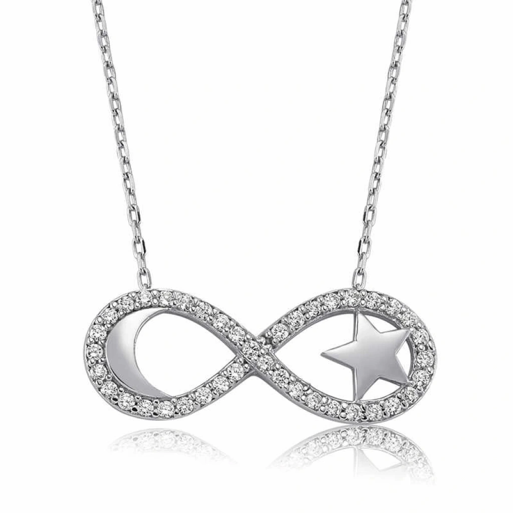 Gümüş Sonsuzluk Ay Yıldız Kolye