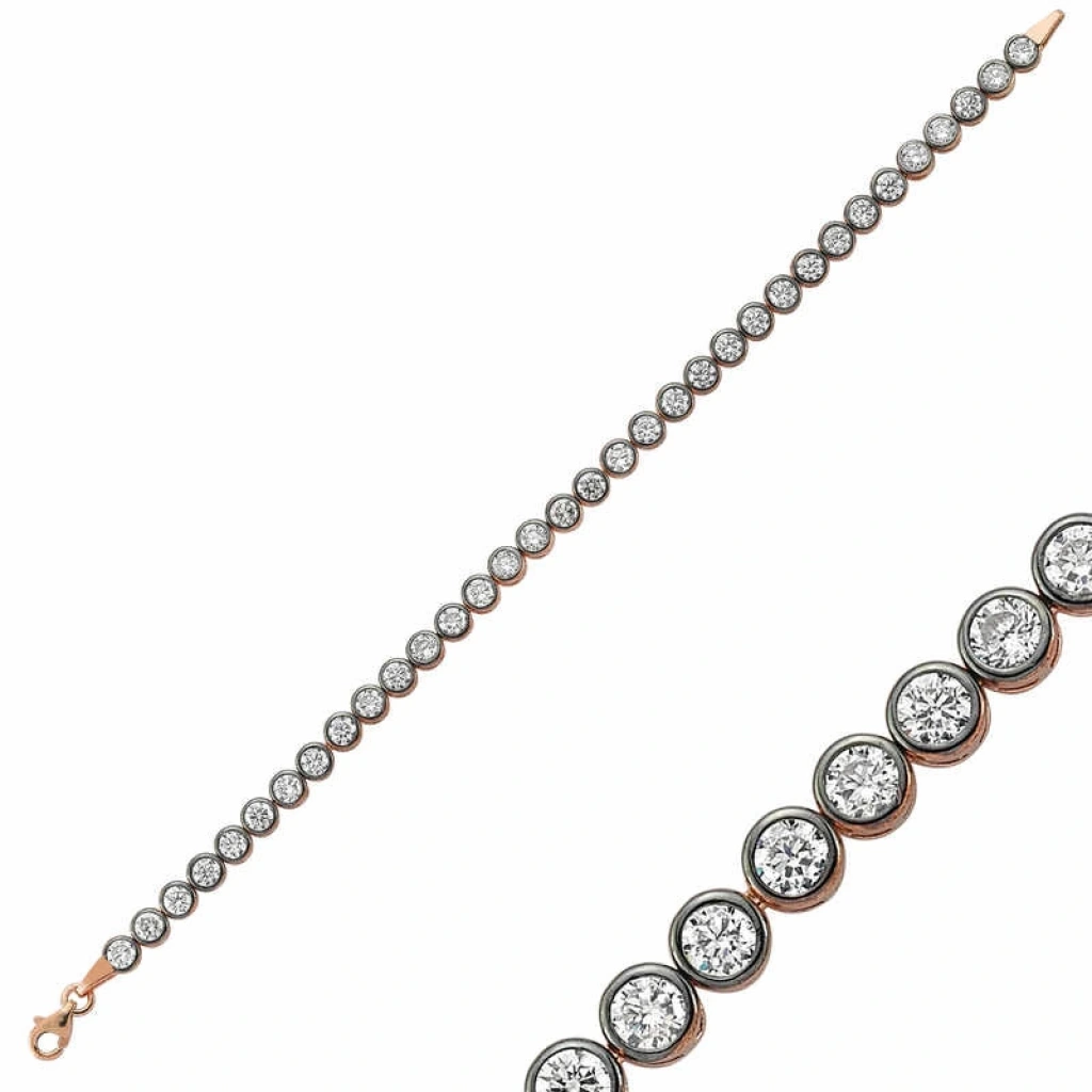 Gündelik hayatta, özel günler ve gecelerde tercih edebileceğiniz ışıl ışıl taşları ile yıldızları anımsatan bu bilekliği severek kullanacaksınız. Şık bir görünüm yakalamak isteyen tüm bayanlara hitap eden, modası geçmeyecek olan taşlı gümüş bileklik sizleri bekliyor. Gümüş su yolu bayan bileklik; doğum günü hediyesi, sevgililer günü hediyesi veya annelere hediye olarak özel günlerde tercih edilebilecek mükemmel bir seçenektir. 925 ayar gümüşten imal edilmiştir. Gümüş üzerine rose altın kaplama yapılmıştır. Rose altın kaplama yapılan bayan bileklik modelleri parlaklığını uzun süre muhafaza eder ve oksitlenmesi gecikir. Tüm bayan bilekliklerde olduğu gibi gümüş su yolu bayan bileklik modeli de el emeği ile üretilmiştir. Gümüş ve değerli taşlar nedeniyle belirtilen ortalama ürün ağırlığında ± %10 sapma olabilmektedir.