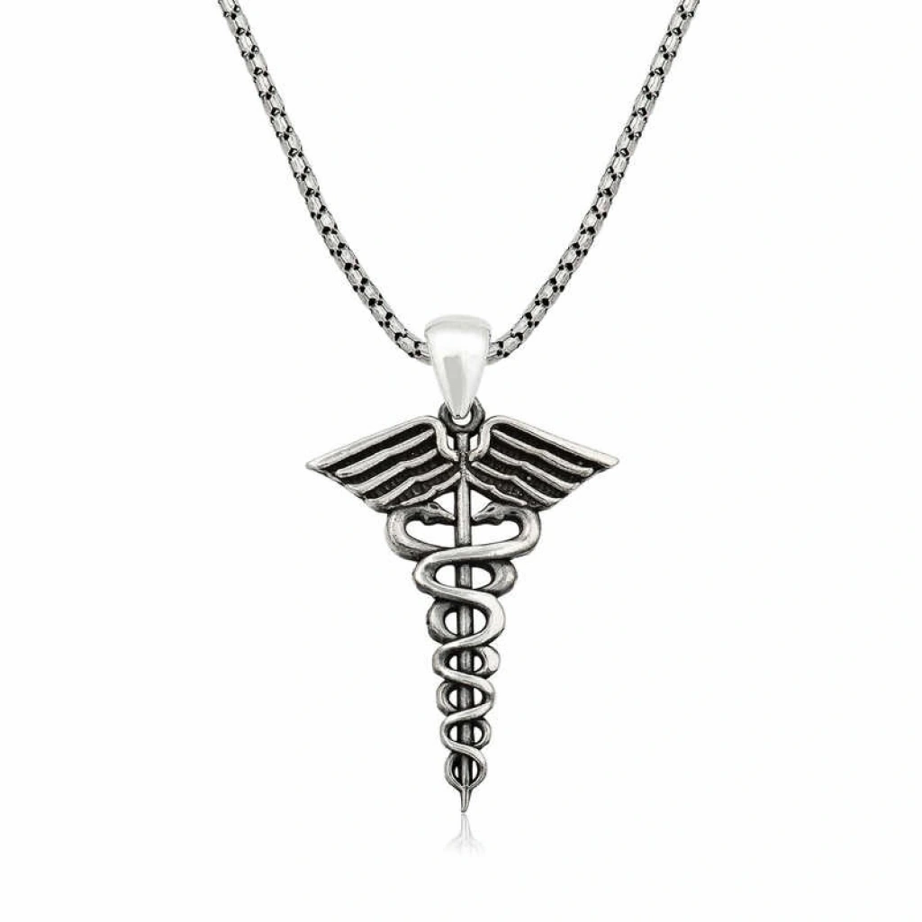 Gümüş Tıp Sembolü Kadüse Erkek Kolye