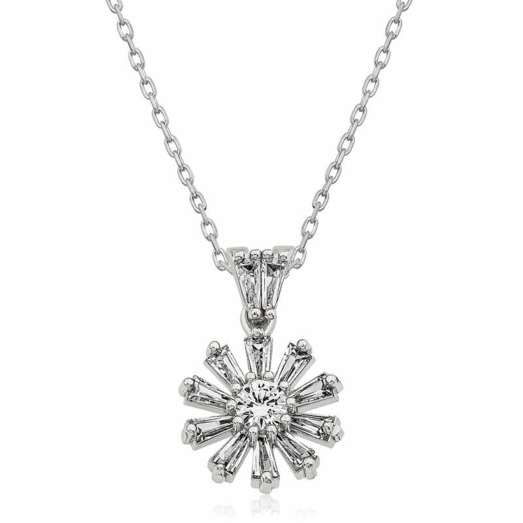 925 Ayar Gümüş Trapez Taşlı Çiçek Kadın Gümüş Kolye T5565 (599599)