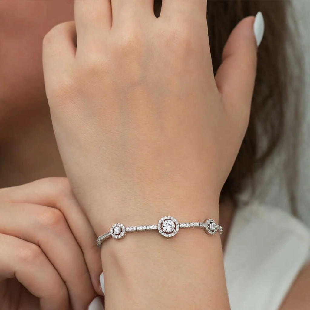 Gümüş Üç Taşlı Su Yolu Bayan Bileklik