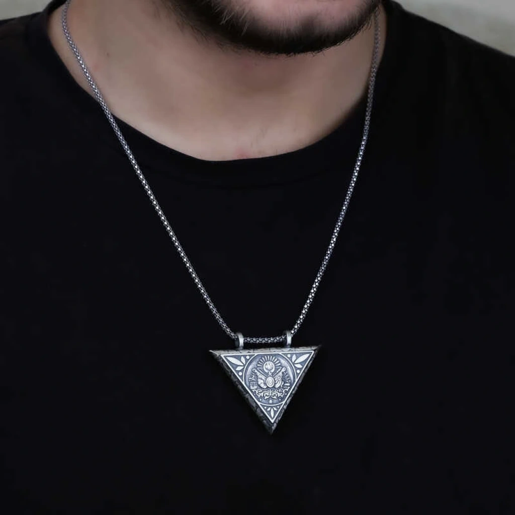 Gümüş Üçgen İçi Açılabilen Osmanlı Arma Muskalık Kolye