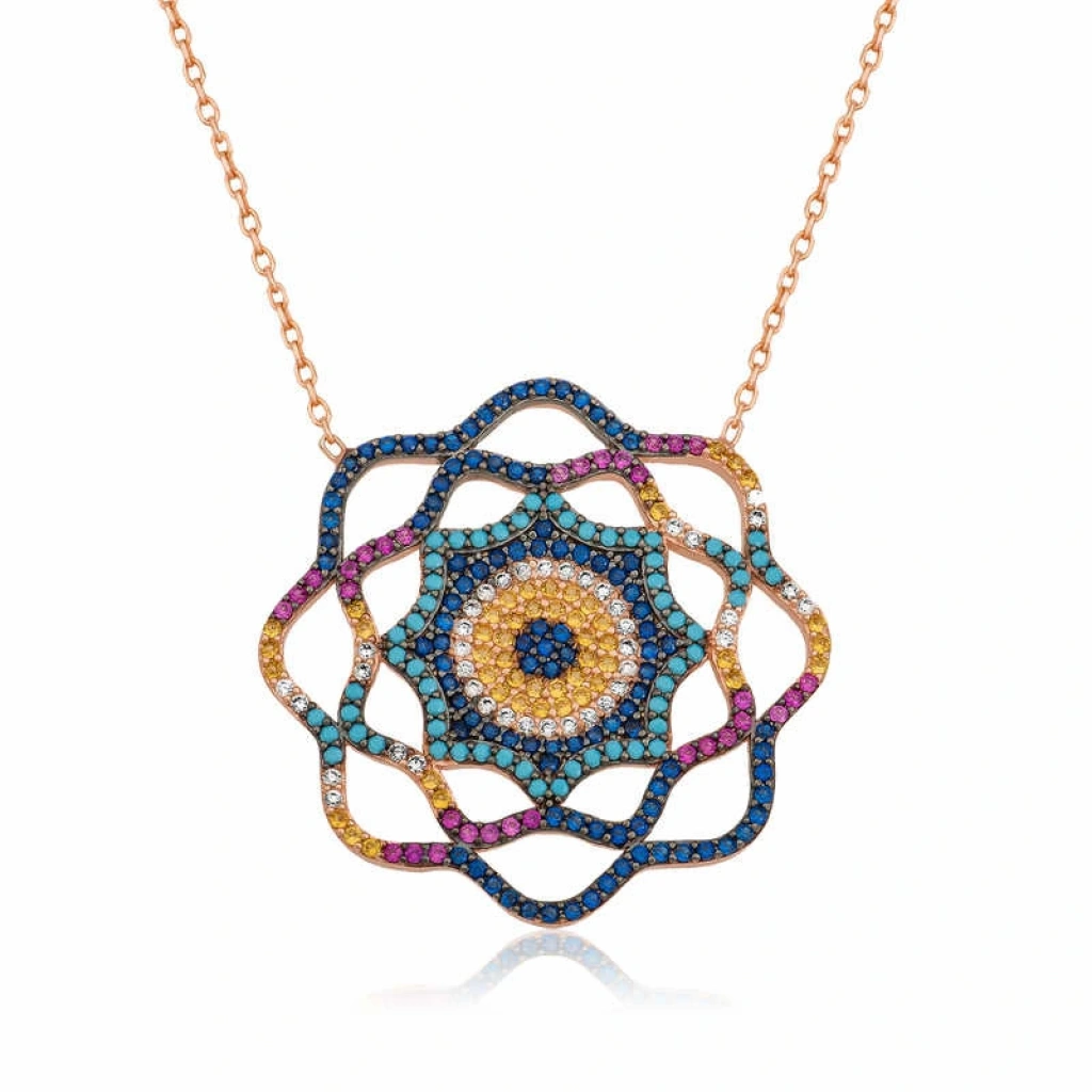 Gümüş Yaşam Güneşi Nazar Bayan Kolye