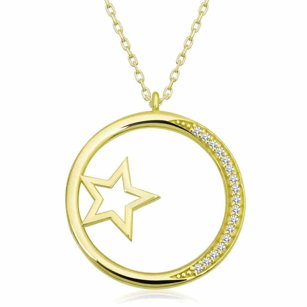 Yıldız, pek çok toplumda ve öğretide şans getirildiğine inanılan uğurlu bir semboldür. Venüs Gezegeninin enerjisini taşır. Venüs Gezegeni, aşk ve aşk enerjisinin de temsilcisidir. Bu şık zirkon taşlardan oluşan yıldız kolye; doğum günü hediyesi, sevgililer günü hediyesi veya özel günlerde tercih edilebilecek mükemmel bir seçenektir. Gümüş gold zirkon taşlı yıldız kadın kolye 925 ayar gümüşten imal edilmiştir. Bu kolye üzerinde gold kaplama vardır. Gold kaplama yapılan gümüş kadın kolye modelleri parlaklığını uzun süre muhafaza eder. Tüm gümüş kadın kolye modellerimizde olduğu gibi gümüş yıldız detaylı halka kadın kolye modeli de el emeği ile üretilmiştir. Gümüş ve değerli taşlar nedeniyle belirtilen ortalama ürün ağırlığında ± %10 sapma olabilmektedir.