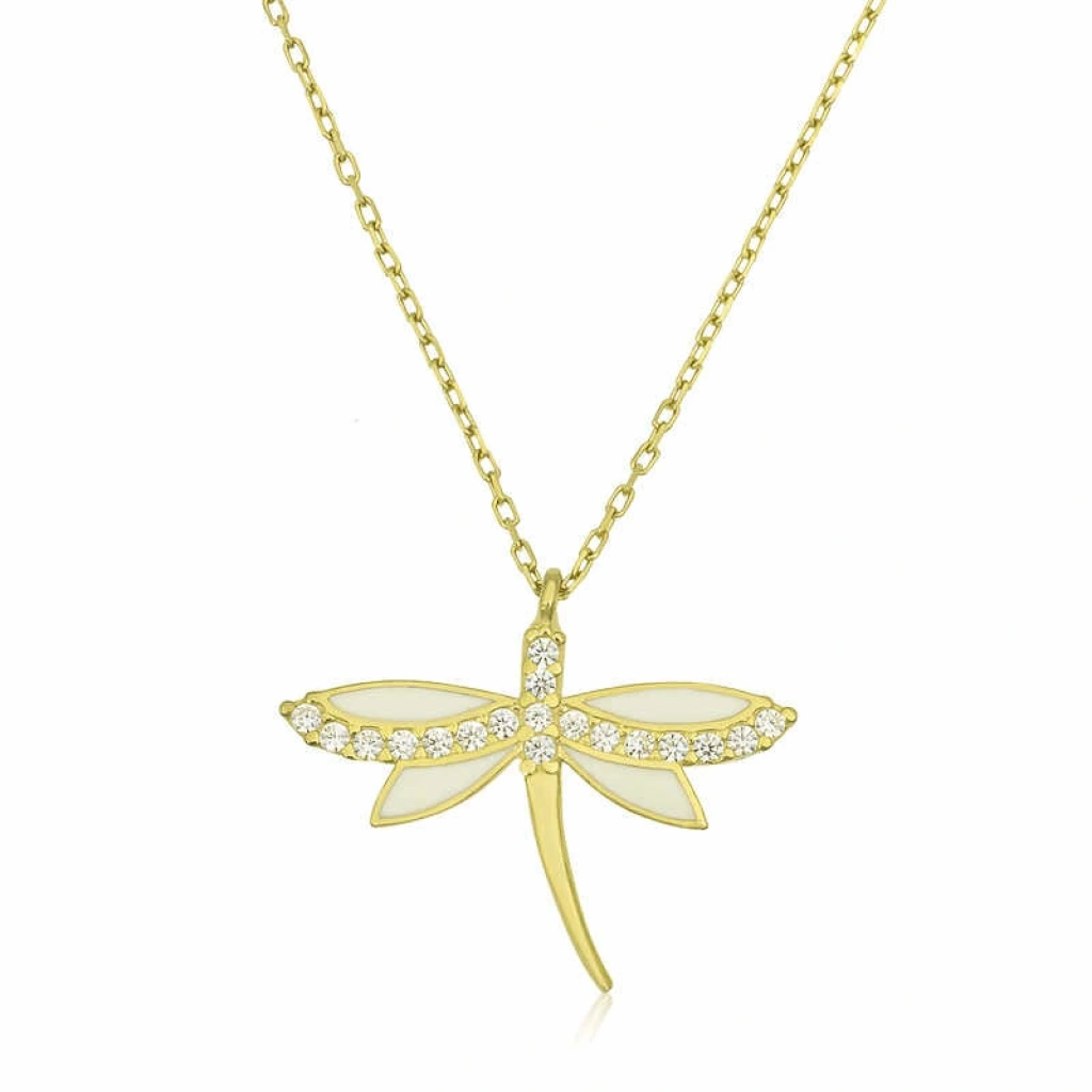 Yusufçuk, bağlılığın, sadakatin, tek eşliliğin sembolüdür... Ölüme rağmen aşkından vazgeçmez yusufçuk... Doğa gereği, erkek yusufçuk ile dişi yusufçuğun çiftleşmesinin ardından erkek yusufçuk ölmektedir. Sonunda ölüm olduğunu bile bile erkek yusufçuk, hayatı boyunca tek bir dişi ile çiftleşiyor ve bundan asla vazgeçmiyor... Kolye, böyle hüzün ve sadakat kokan bu güzellikten ilham alarak tasarlanmıştır... Bu zarif kolye; doğum günü hediyesi, sevgililer günü hediyesi veya özel günlerde tercih edilebilecek müthiş bir kolyedir. Bu şık tasarım 925 ayar gümüşten imal edilmiştir. Gümüş üzerine gold kaplama yapılmıştır. Gold kaplama yapılan kolyeler parlaklığını uzun süre muhafaza eder. Kolye üzerinde bulunan taşlar zirkondur. Tüm bayan gümüş kolyelerde olduğu gibi gümüş yusufçuk bayan kolye de el emeği ile üretilmiştir. Gümüş ve değerli taşlar nedeniyle belirtilen ürün ağırlığında ± %10 sapma olabilmektedir.