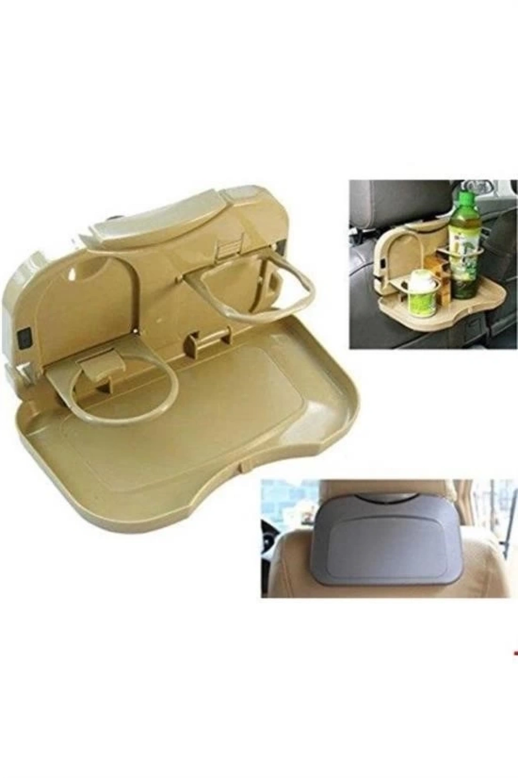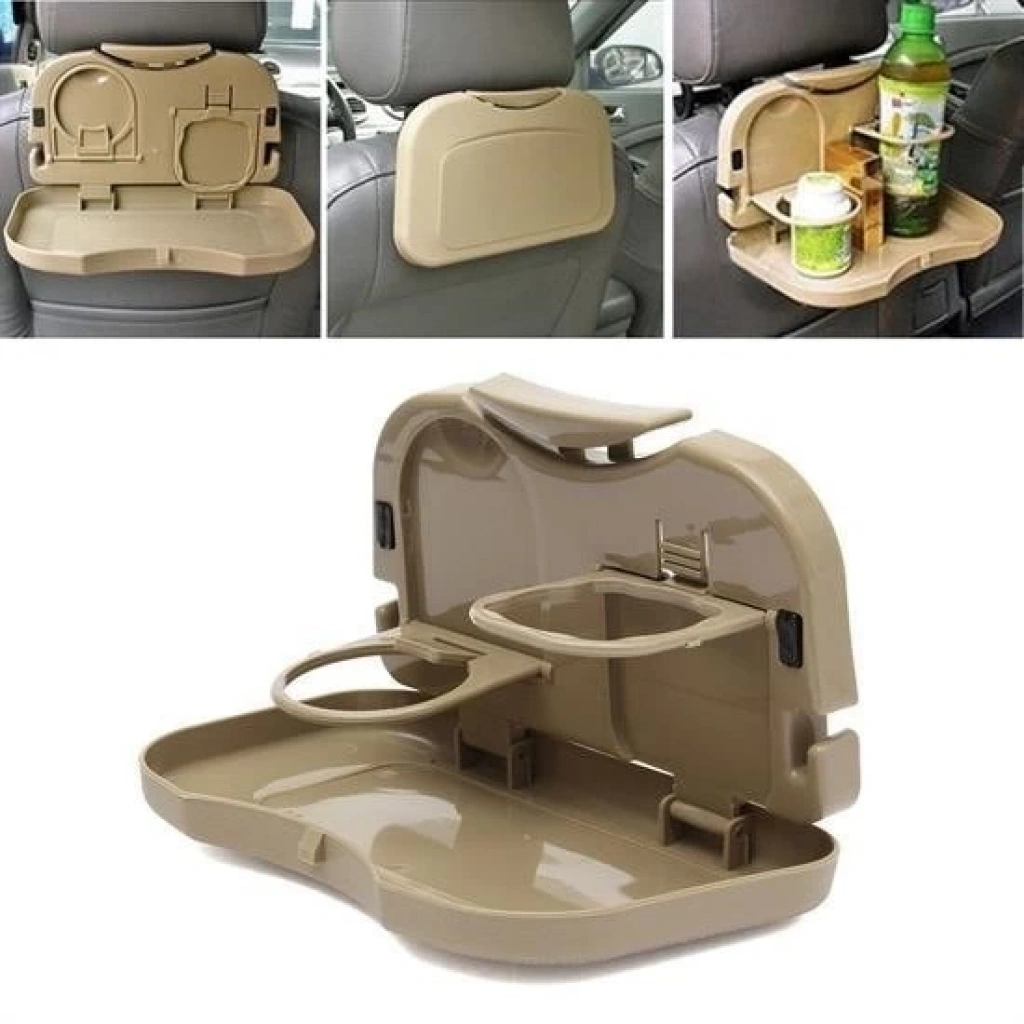 Araç İçi Koltuk Arkası Katlanabilir Bardak Tutuculu Bej Tepsi