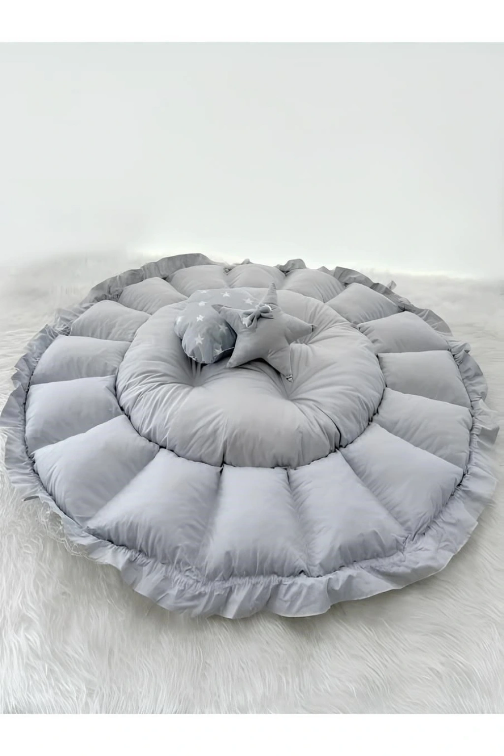 bebek yuvası içi elyaf olup kurdele ile desteklenmektedir çift taraflı kullanımı mevcuttur
