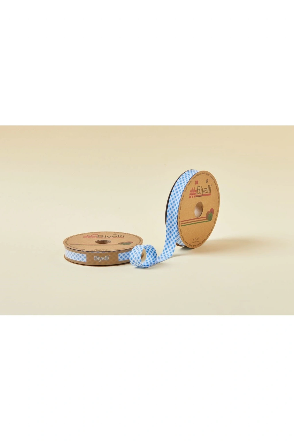 Biye Ekoseli Katlı E01 Mavi 2 cm 25 Metre %65 Koton %35 Polyester