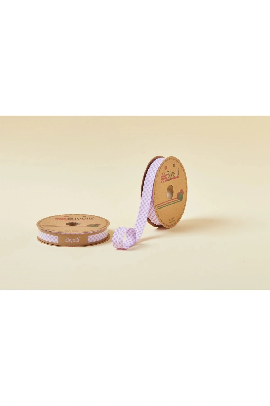 Biye Ekoseli Katlı E07 Lila 2 cm 25 Metre %65 Koton %35 Polyester