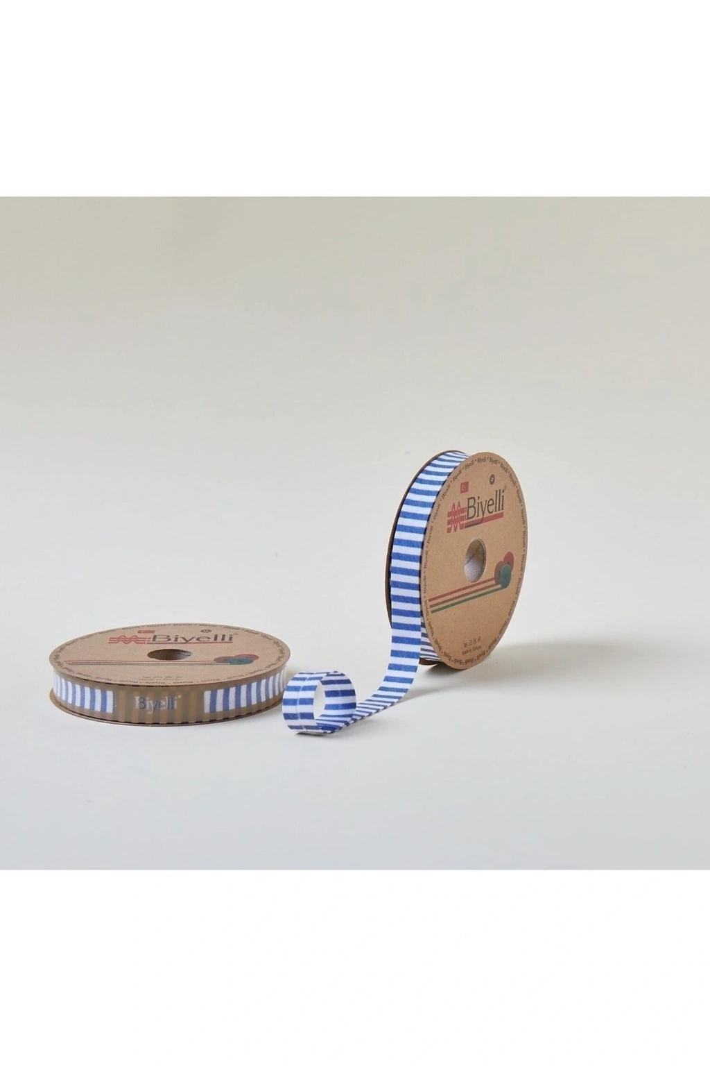 Biye Kalın Çizgili Katlı F01 Mavi 2 cm 25 Metre %65 Koton %35 Polyester