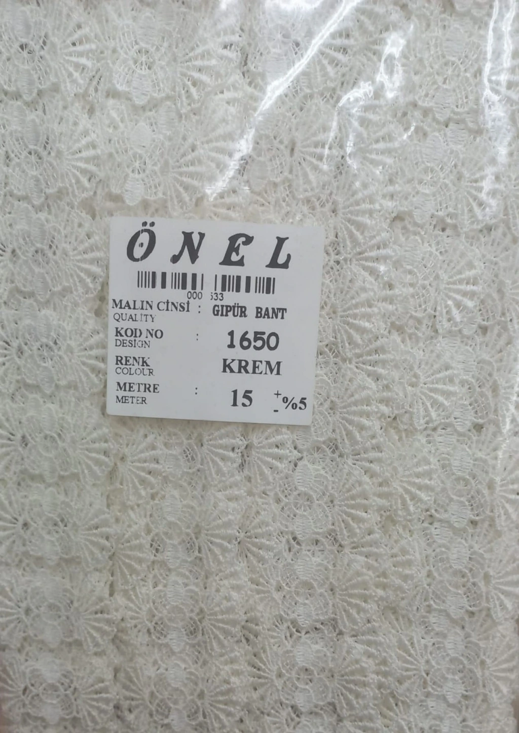 Dantel Polyester Güpür Bant Krem 15 Metre En 6 cm ON-1650-KR