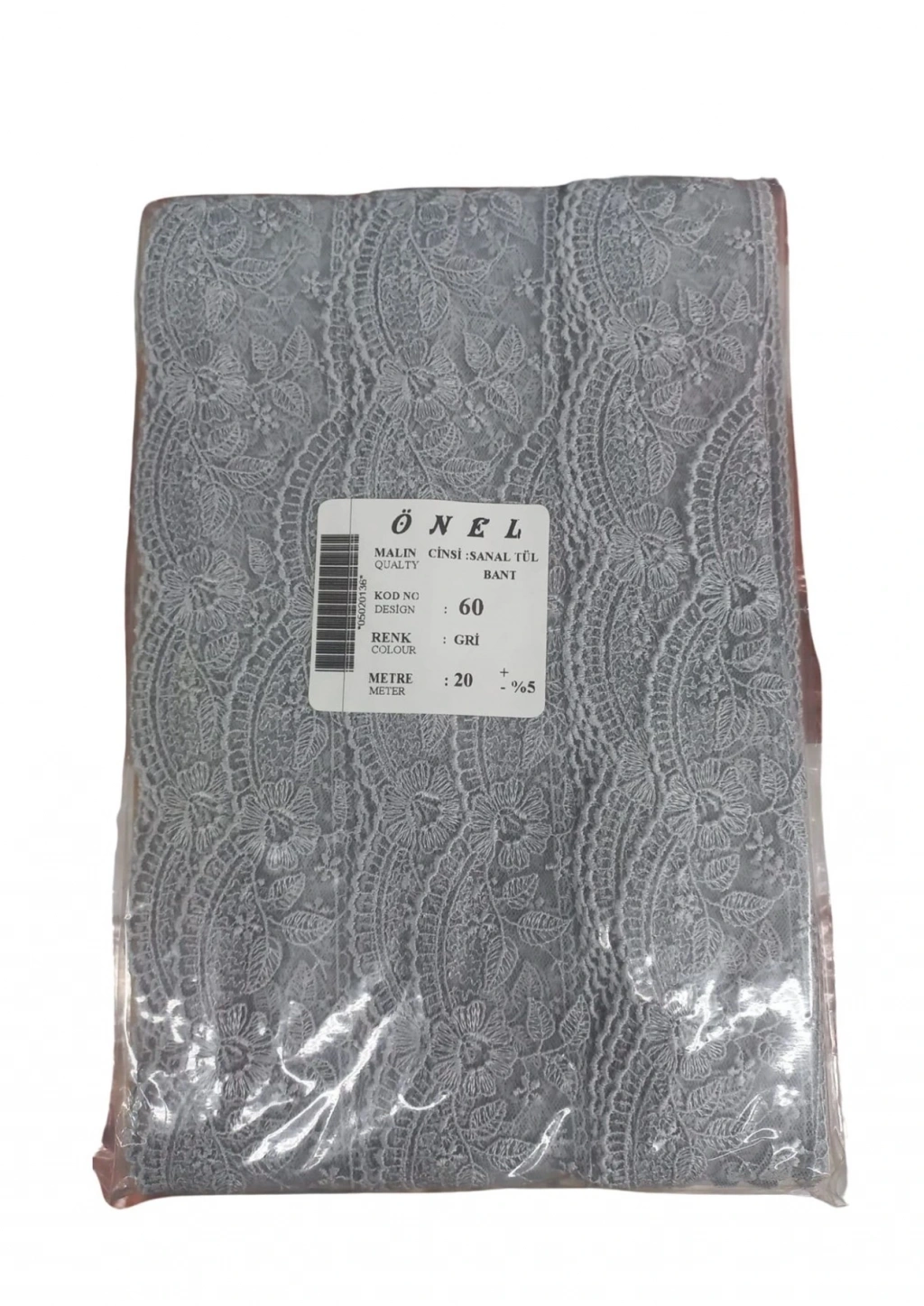 Dantel Polyester Sanal Tül Bant Gri 20 Metre En 6 cm ON-60-G