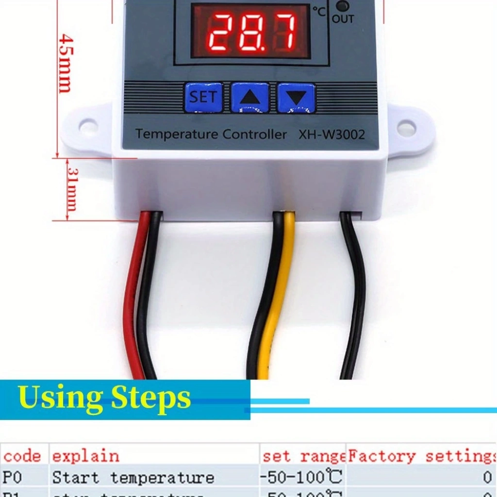 XH‑W3002 modeli, 3 tuşlu, LED net ekranlı, dijital termostat olarak hassas sıcaklık kontrolü sunar. Ayarlanabilir üst/alt sıcaklık sınırlarıyla ısıtma/soğutma işlevlerini kusursuz yönetir. 220 V / 1500 W yük kapasitesi, NTC su geçirmez prob ve ±0,1 °C doğruluk sayesinde kuluçka makineleri, akvaryumlar ve seralar gibi hassas uygulamaları güvenle destekler. Basit montaj, uzun ömürlü sensör ve kolay kullanım ön plandadır
