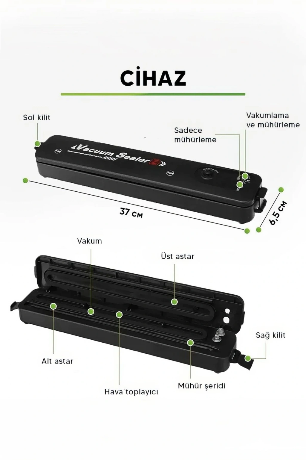 Gıda vakum ve mühürleme makinesi, yiyeceklerin taze kalmasını sağlamak ve saklama süresini uzatmak için ideal bir araçtır. Bu makine, evde ve restoranlarda kullanım için tasarlanmış, gıdaların hava ile temasını keserek bakterilerin üremesini engeller ve tazeliklerini korur. Hem katı hem de sıvı gıdalar için mükemmel sonuçlar verir. Gelişmiş vakum teknolojisi sayesinde, gıdalarınızı korurken daha az yer kaplamasını sağlar ve bu da depolama alanını optimize eder.