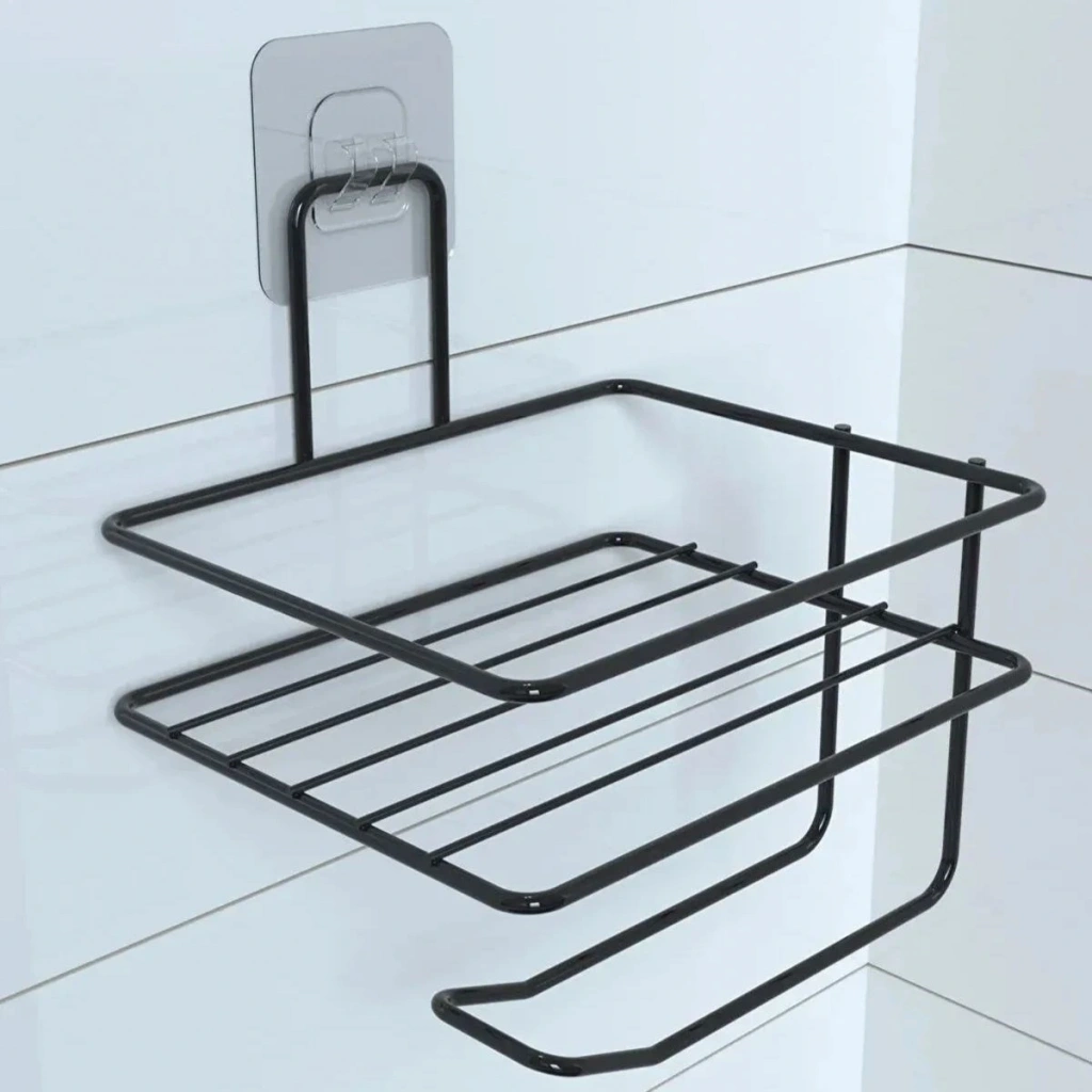 Yapışkanlı Tuvalet Kağıdı Tutacağı ve Yedek Raf, banyonuzda hem pratikliği hem de modern tasarımı bir araya getirir. Şık siyah metal tasarımıyla banyo dekorasyonunuza estetik bir dokunuş katarak fonksiyonel bir kullanım sunar.